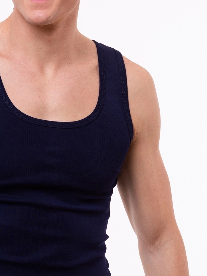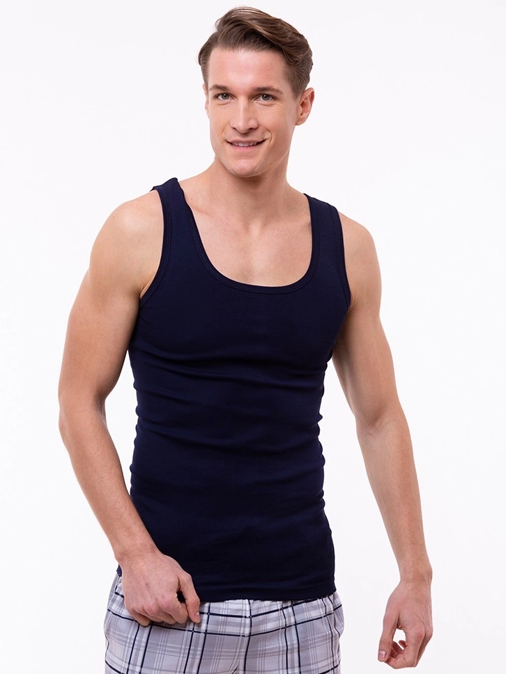 Jednobojna muška atlet majica sa širokim bretelama i okruglim okovratnikom od pamuka.