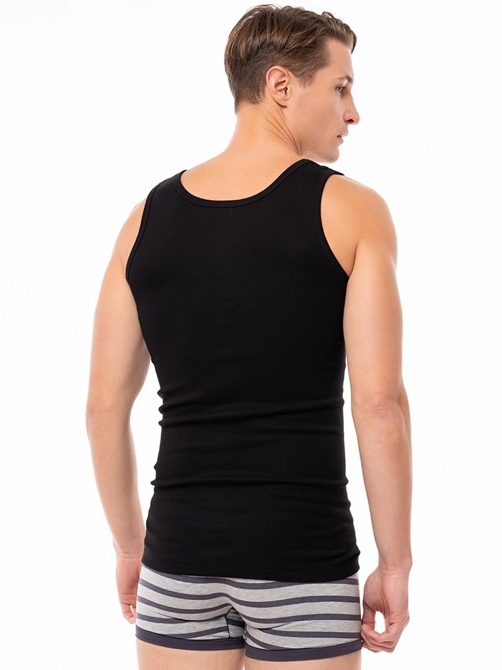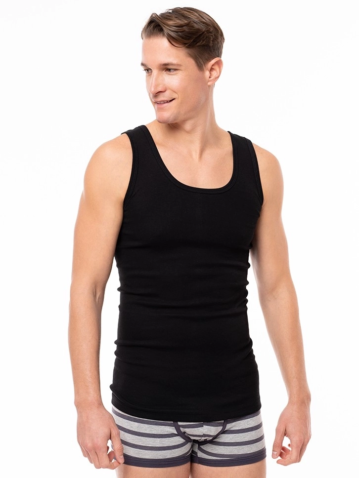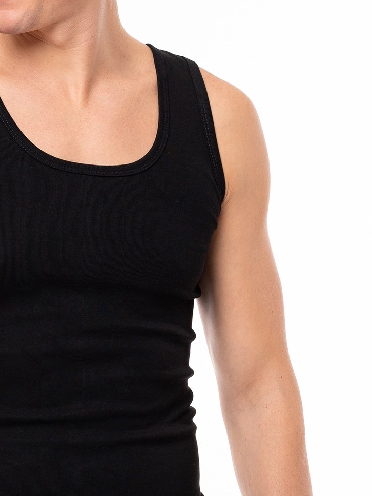 Jednobojna muška atlet majica sa širokim bretelama i okruglim okovratnikom od pamuka.