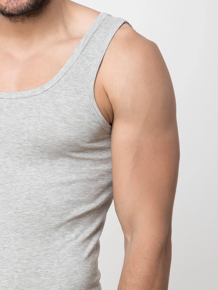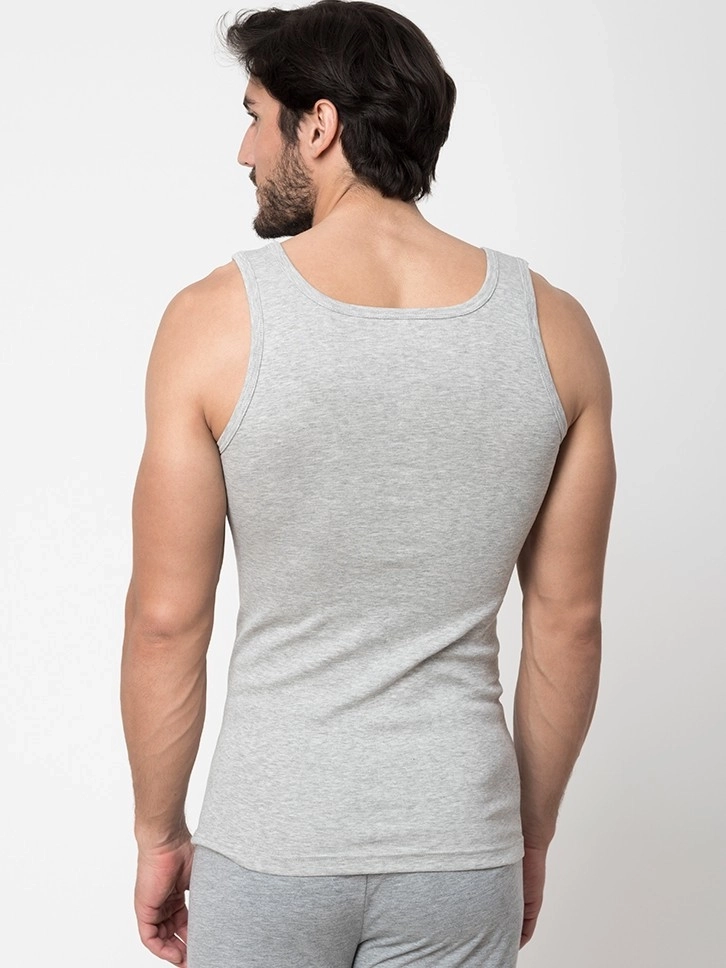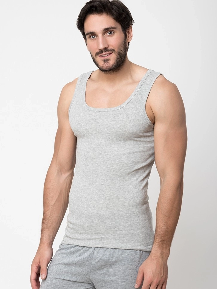 Jednobojna muška atlet majica sa širokim bretelama i okruglim okovratnikom od pamuka.
