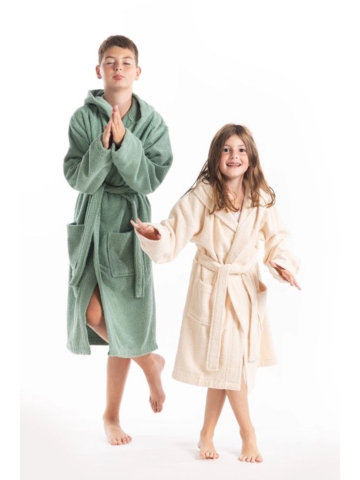 Dečiji bademantil u boji vanile deo je Forest Dreams Collection kolekcije jesen/zima 25/26. Izrađen je od 100% kvalitetnog pamuka, koji je izuzetno mekan i prijatan, pa savršeno odgovara i najosetljivijoj dečijoj koži.