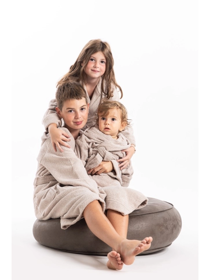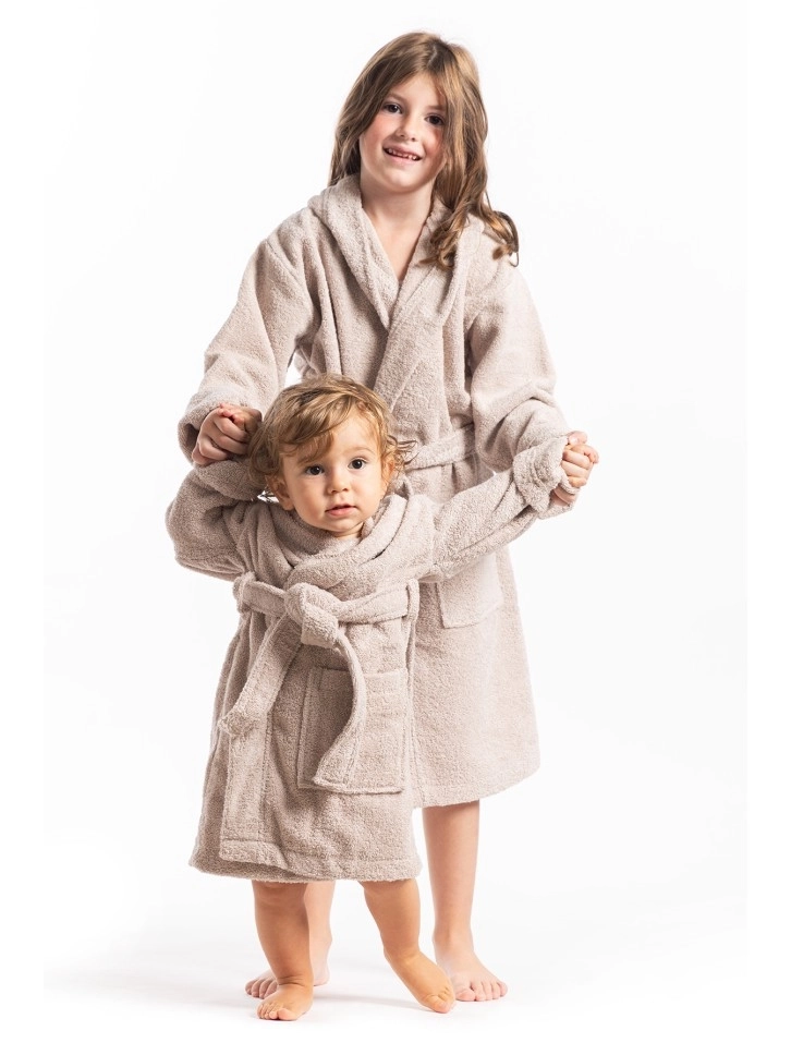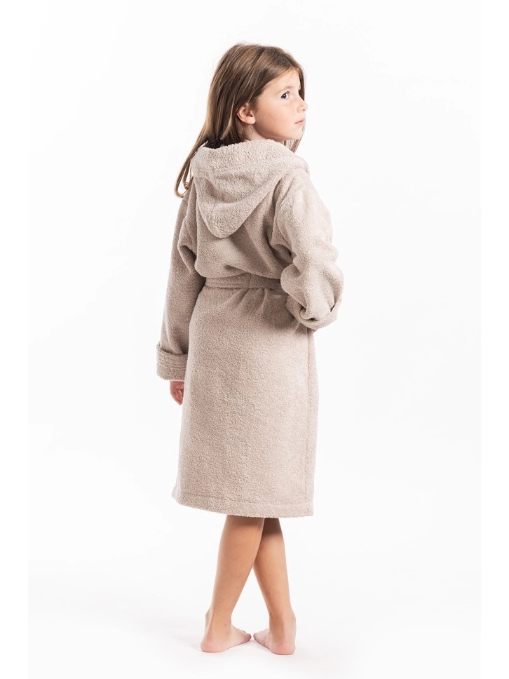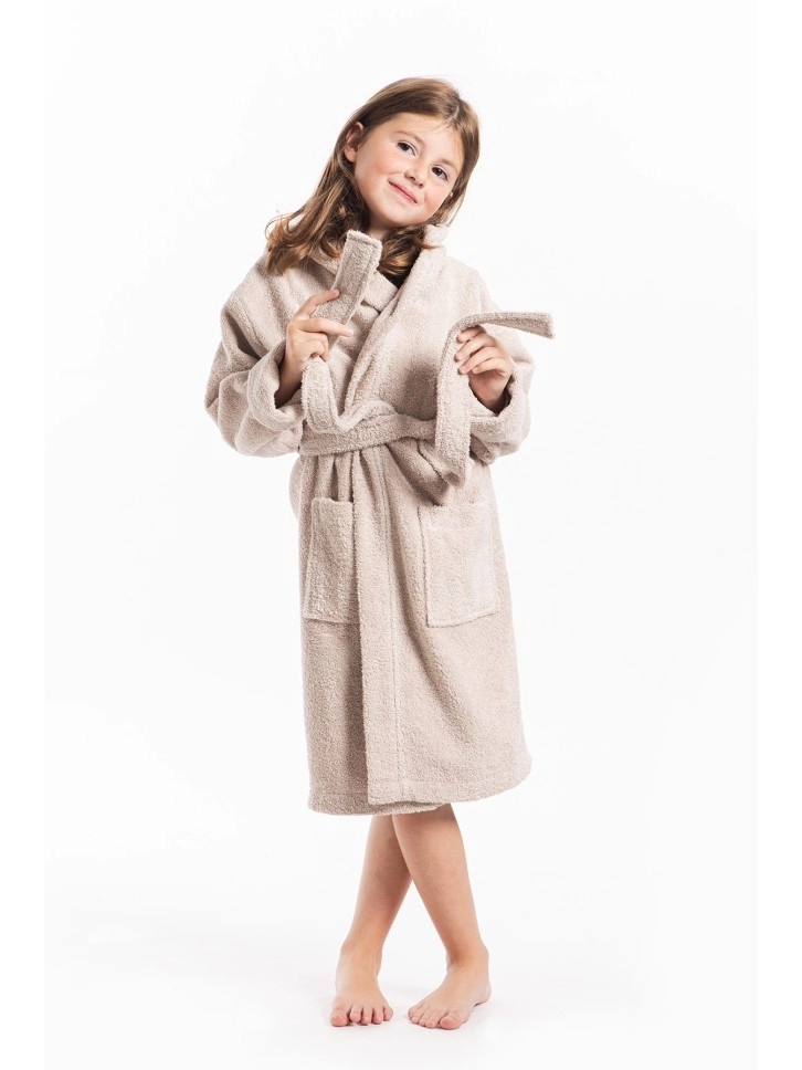 Dečiji bademantil u bež boji deo je Basic kolekcije. Izrađen je od 100% kvalitetnog pamuka, koji je izuzetno mekan i prijatan, pa savršeno odgovara i najosetljivijoj dečijoj koži.