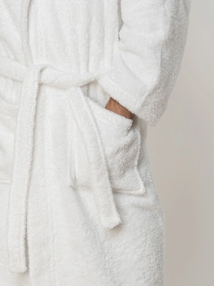 Naš unisex bademantil od 100% pamuka u beloj boji nudi udobnost i praktičnost sa svoja dva prednja džepa, kapuljačom i pojasom.Pored klasične bele boje možete odabrati široke palete boja - bež, kajsija, digital lavanda, teget, siva i žalfija zelena. Pronadjite savršen bademantil za opuštanje i luksuz u svakodnevnom životu. Dostupan je u veličini M do XXL.
