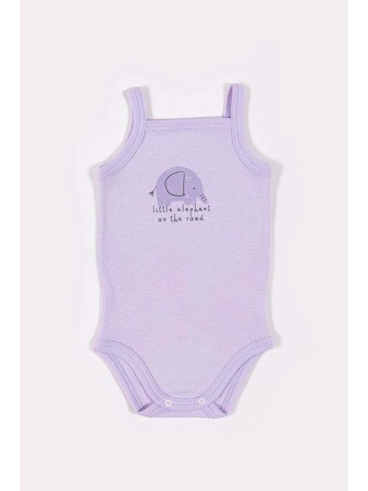 Bebi bodi na usku bretelu u lila boji sa štampom slončića deo je linje za bebe i decu.