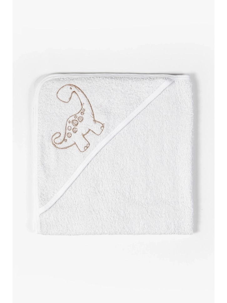 Bebi peškir je osnovna stavka u svakoj bebi opremi. Izrađen od 100% pamuka sa slatkim vezom dinosaurusa. Mekan peškir ima odličnu upijajuću moć i idealan je za brisanje nakon svakodnevne kupke, kao i za upotrebu na plaži ili bazenu. Kapuljača pruža dodatnu toplinu i udobnost. Dimenzije peškira su 80x80cm.