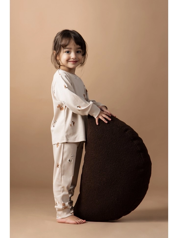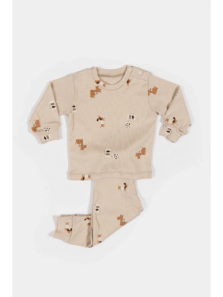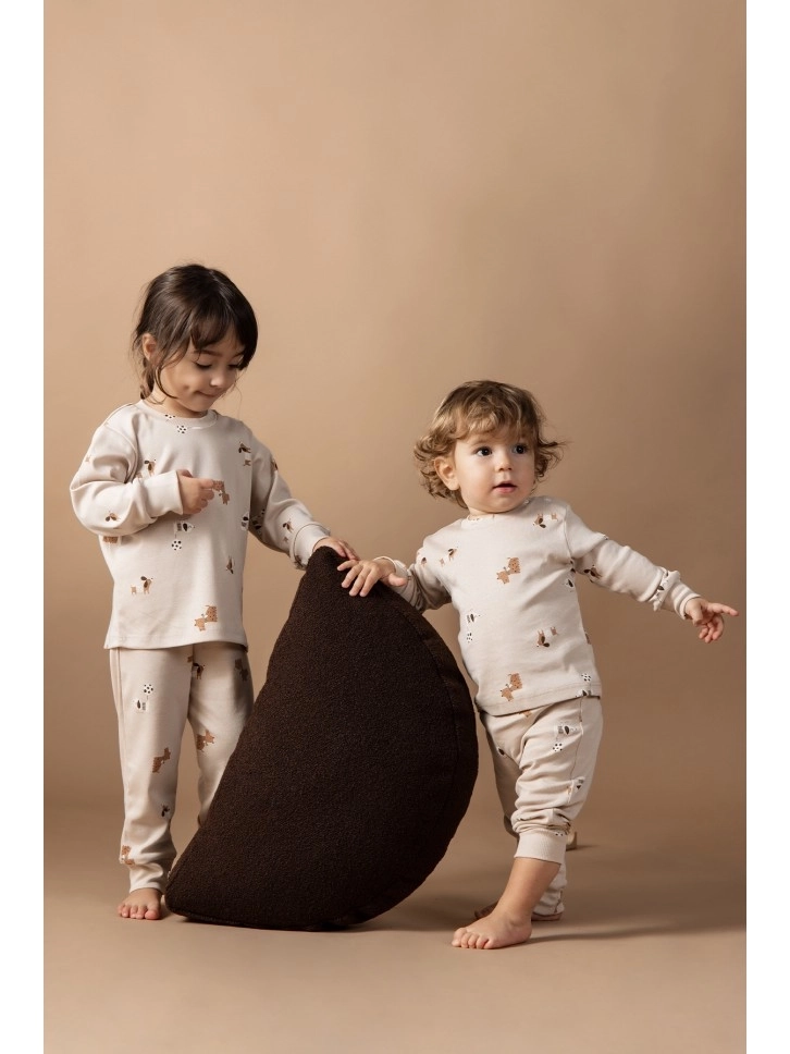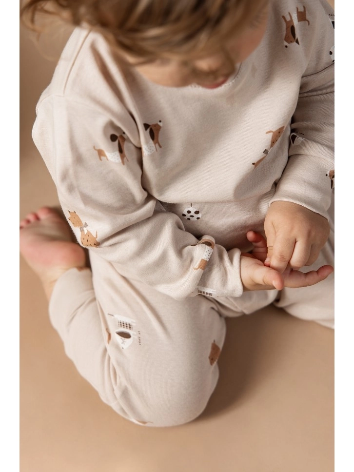 Pidžama za decu u bež boji sa dezenom kuca deo je naše Bubi&Lole linje za bebe i decu.