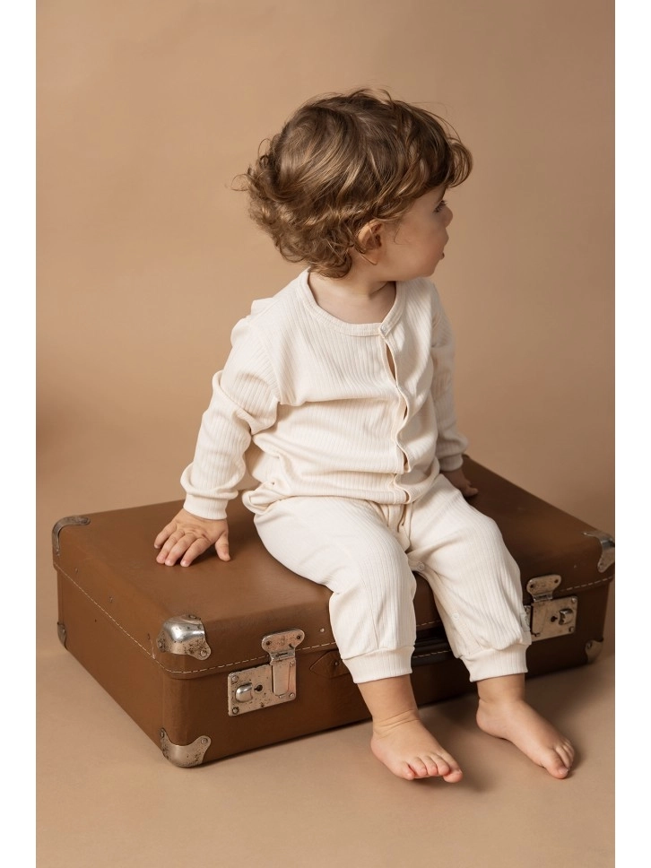 Sašivene su u potpunosti od 100% pamuka za nežnu kožu naših najmlađih. Rebrasti pamuk i udoban kroj čine ih unisex modelom za dečake i devojčice. Minimalistički stil omogućava lako kombinovanje sa ostalom garderobom.