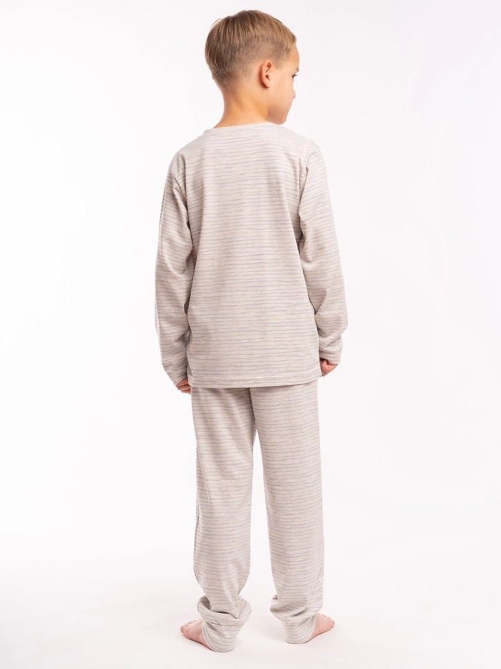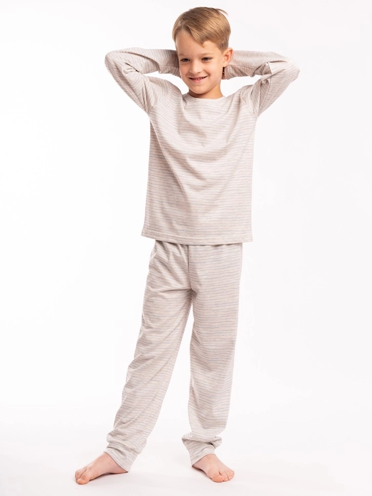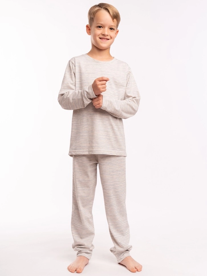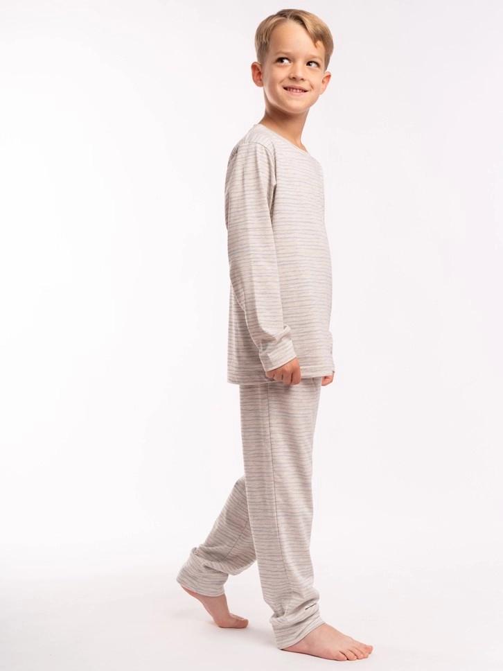 Pidžama za dečake i devojčice u sivoj boji sa prugicama deo je klasične kolekcije.
