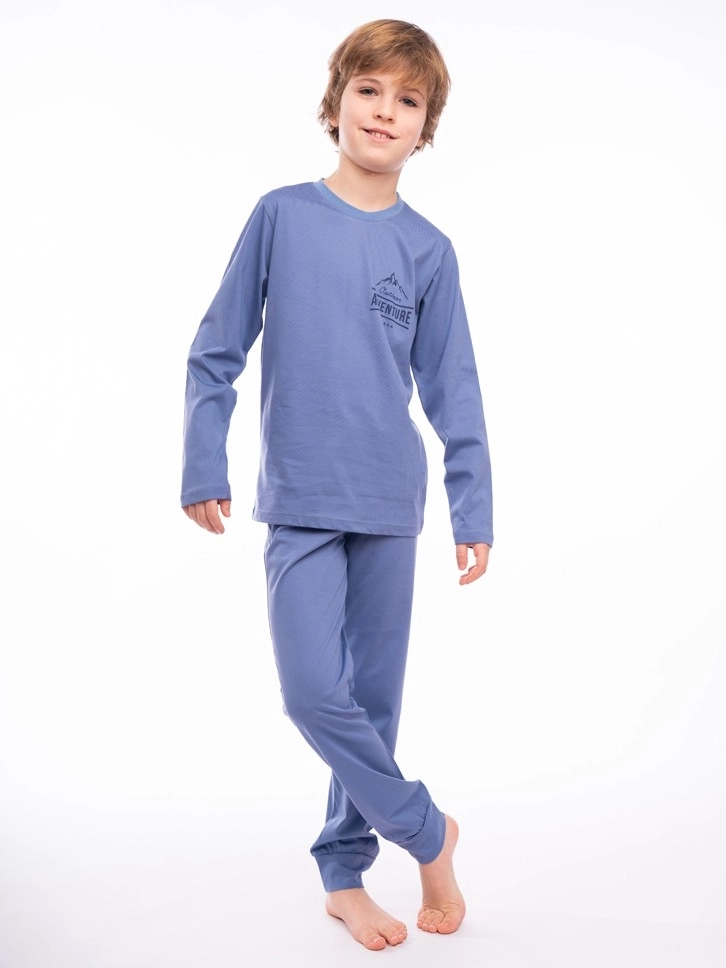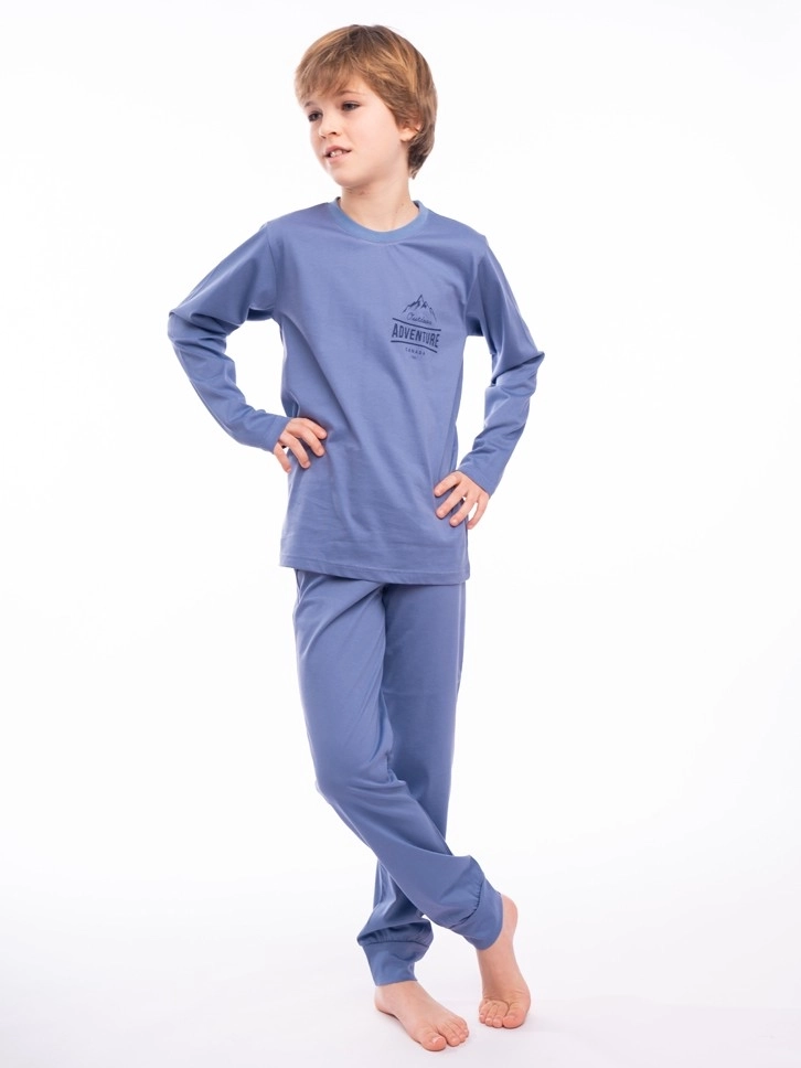 Pidžama za dečake u plavoj boji deo je Basic kolekcije. Skrojena od prirodnog pamuka, koji pruža udobnost i mekoću dečijoj koži. Gornji deo ima mali ukrasni dezen i idealan je izbor za male avanturiste. Donji deo pidžame ima render.