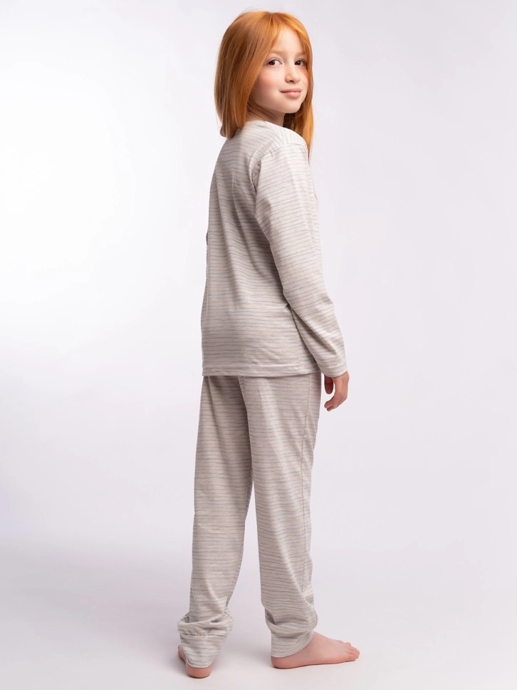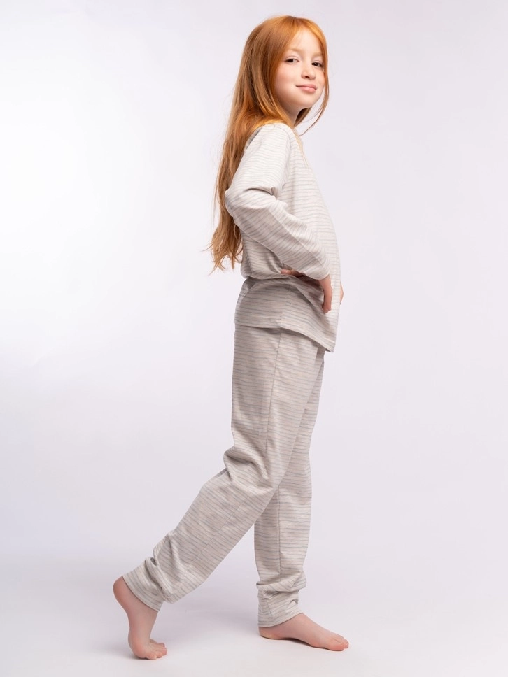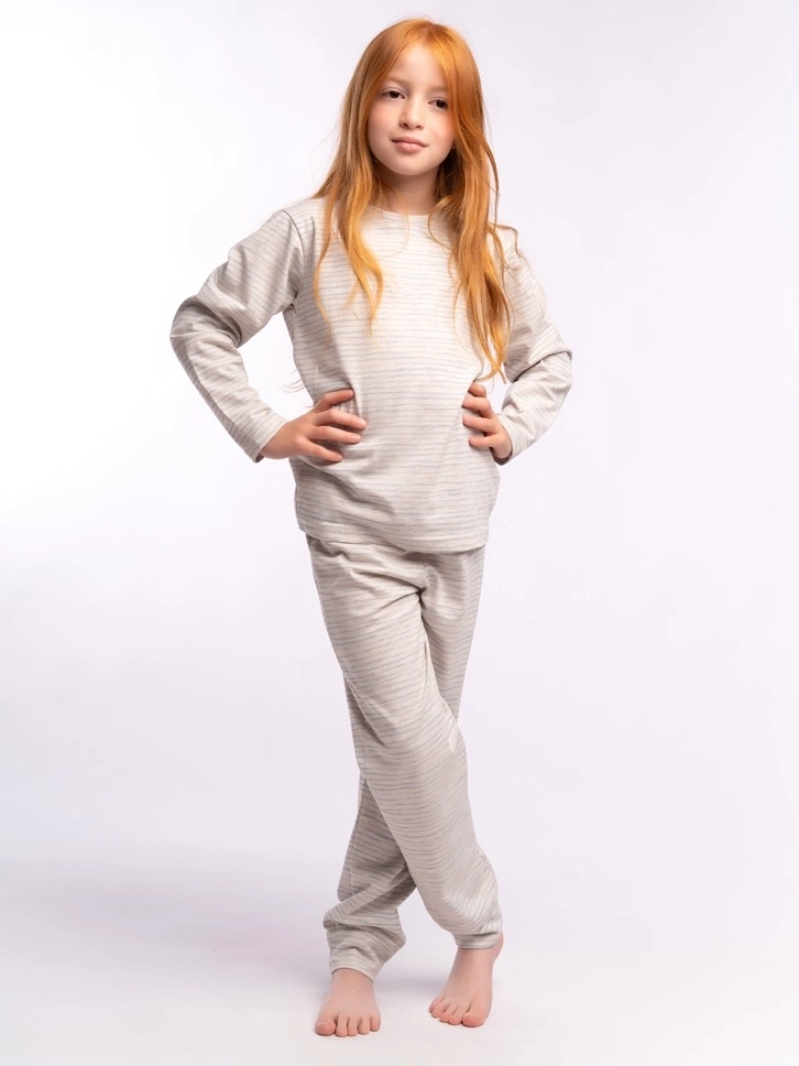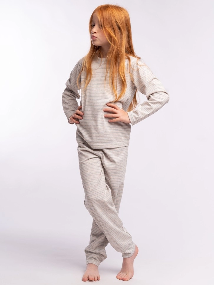 Pidžama za dečake i devojčice u sivoj boji sa prugicama deo je klasične kolekcije.