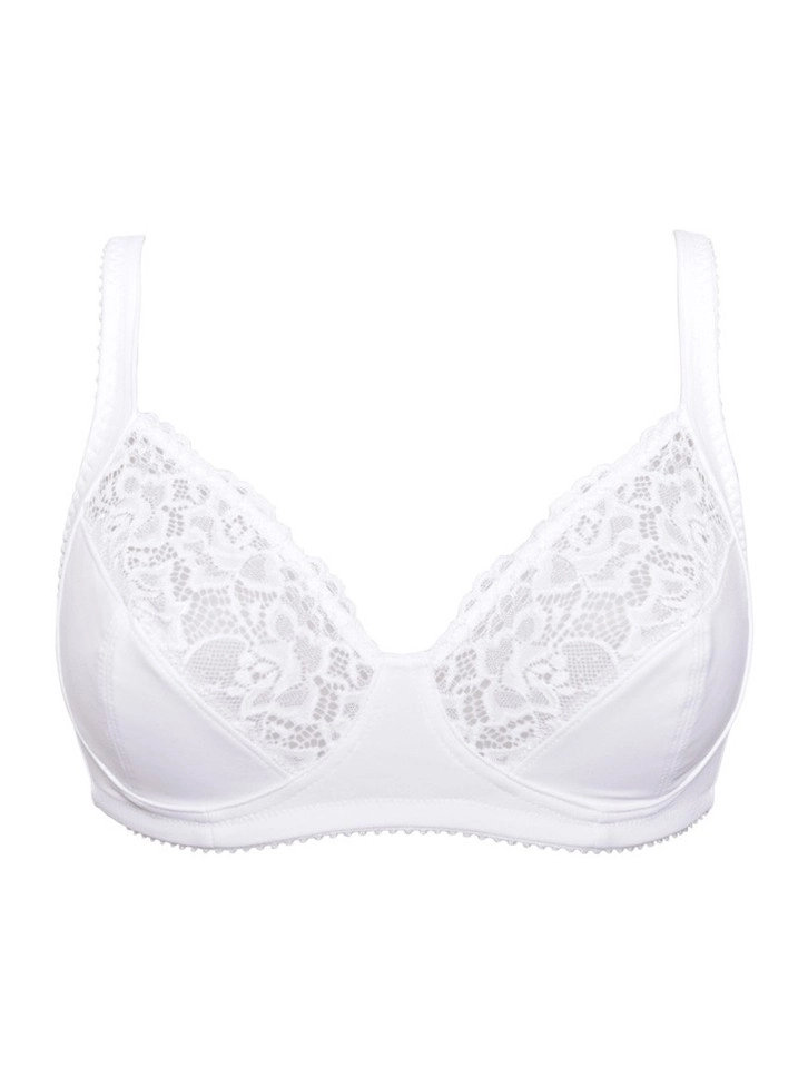 Grudnjak bez donje žice napravljen od rastegljivih mikrovlakana u kombinaciji sa čipkom. Korpe su C dubine i obložene pamukom iznutra, a bretele su podesive.
