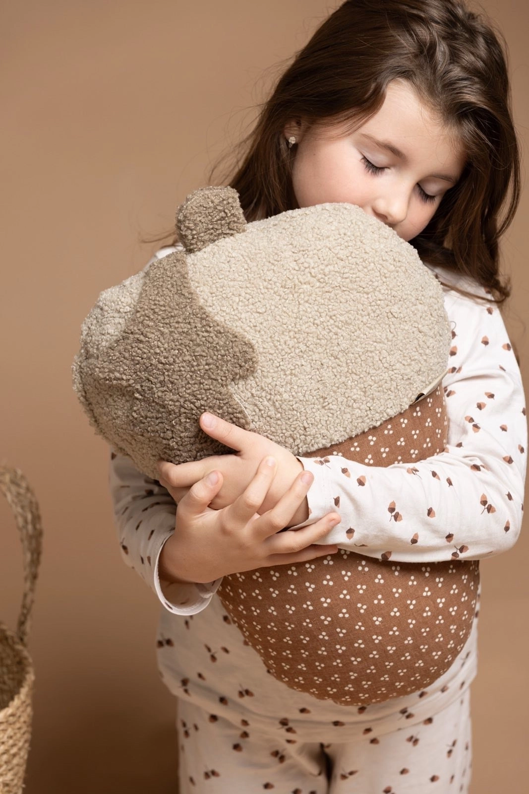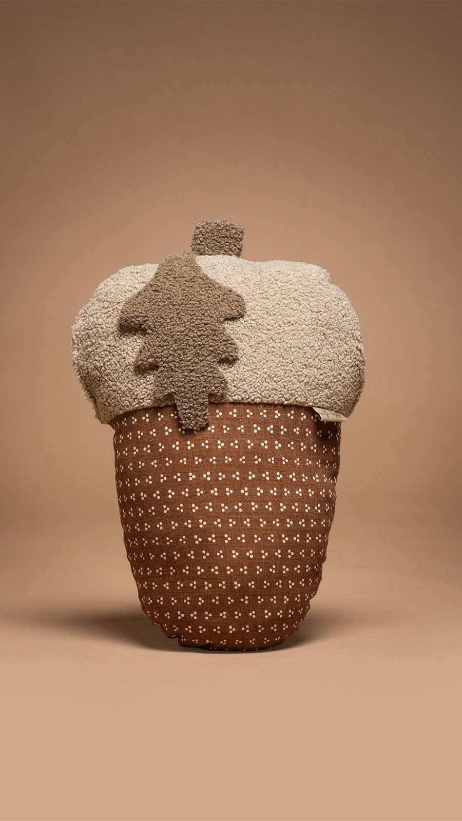 Jastuk u obliku žira, prijatna tekstura i nežne boje čine ih savršenim dekorativnim detaljem, ali sigurnim mekanim osloncem za decu tokom igre ili odmora.