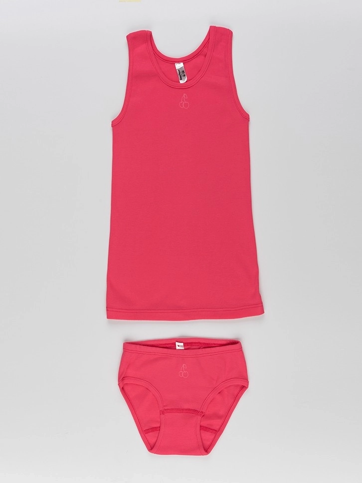 Komplet veš za devojčice u roze boji deo je klasične kolekcije. Komplet čine majica i slip gaćice.