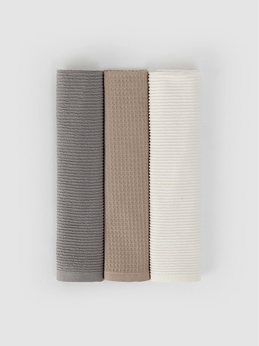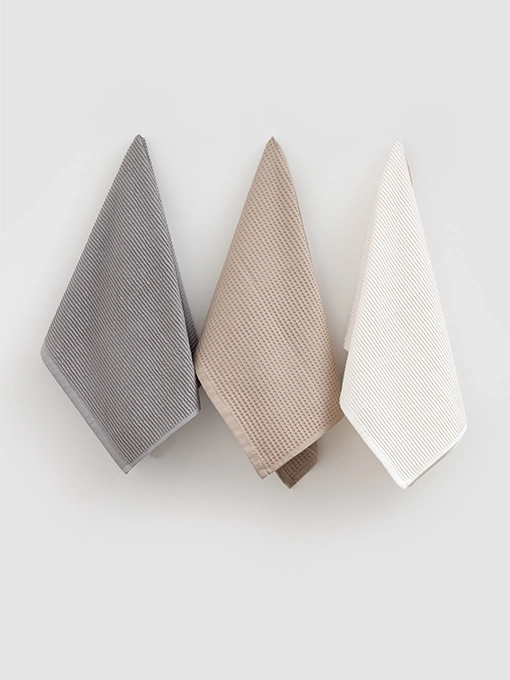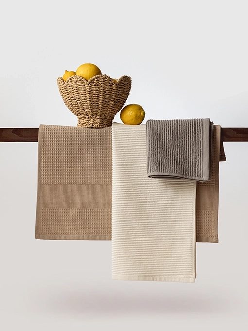 Pamučne kuhinjske krpe od tkanine reljefne teksture u vanila boji. Savršen dodatak svakoj kuhinji koja spaja estetiku i funkcionalnost.