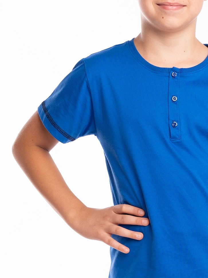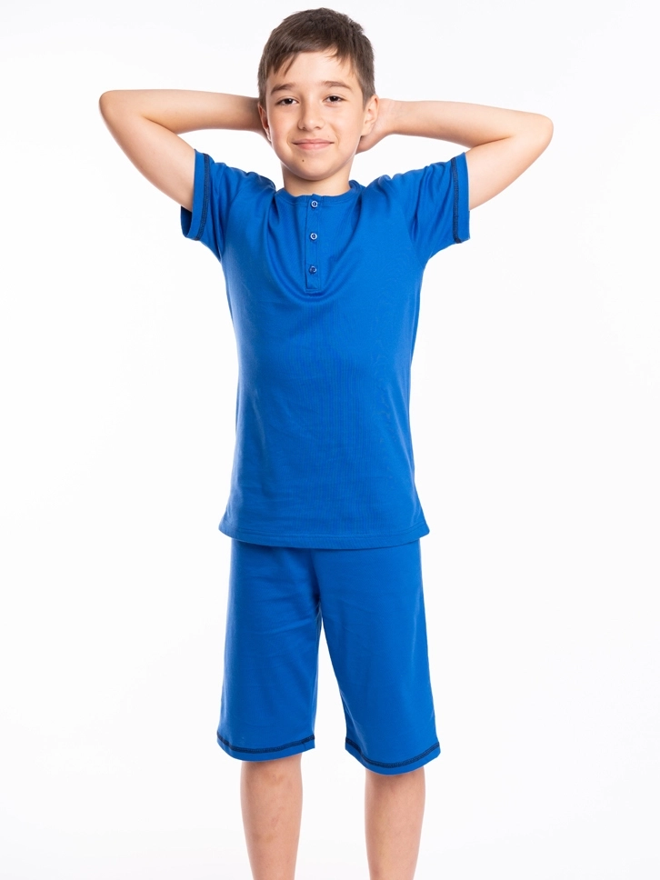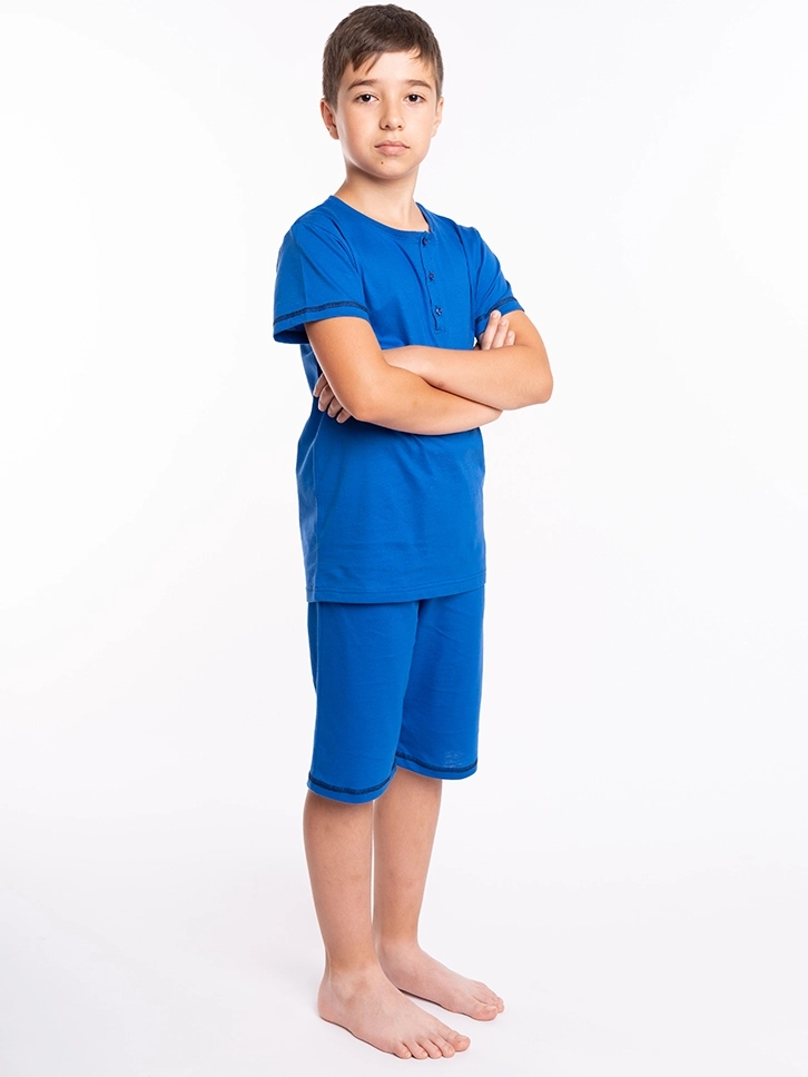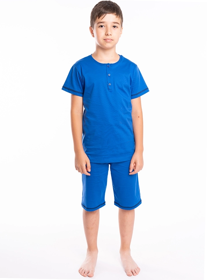 Letnji komplet za dečake u kraljevsko plavoj boji deo je naše klasične kolekcije.