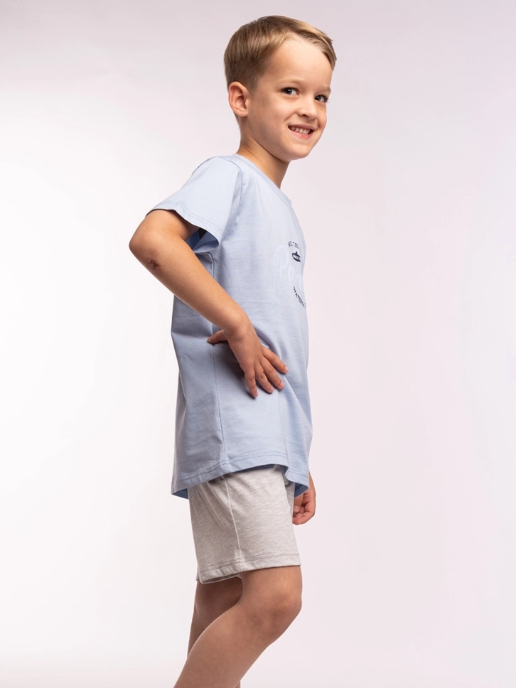Komplet ima klasičan kroj i sašiven je od prirodnog pamuka, koji pruža udobnost i mekoću dečijoj koži. Donji deo je komotan i prijatan za toplije dane. Lepe boje i simpatičan dezen su pravi izbor za dečake koji vole morske avanture.
