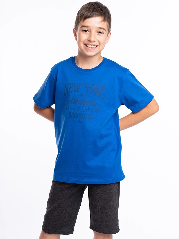 Majica kratkih rukava za dečake u kraljevsko plavoj boji deo je naše klasične kolekcije.