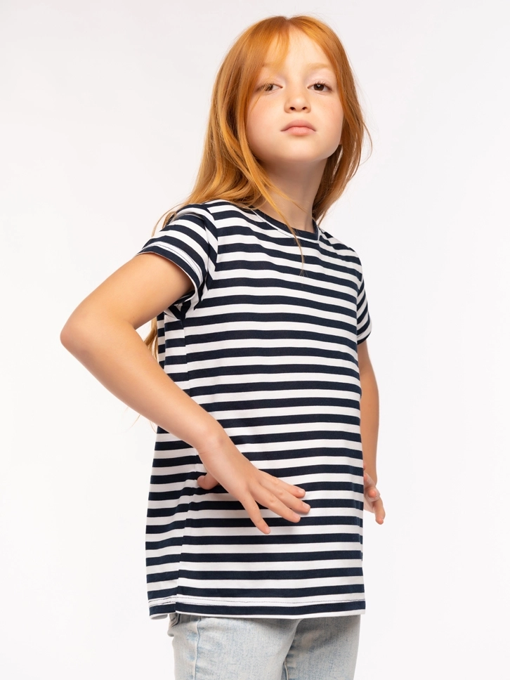 Majica kratkih rukava za devojčice sa dezenom pruga deo je naše Sailor kolekcije.