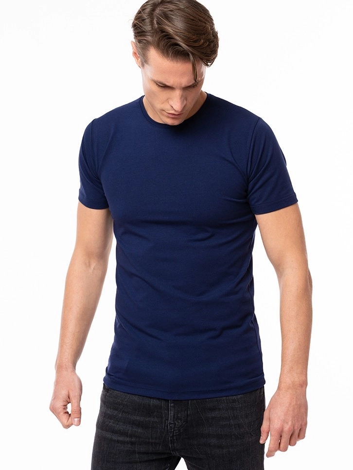 Muška majica kratih rukava u teget boji deo je naše Basic kolekcije. Skrojena je od 100% najkvalitetnijeg pamuka, koji garantuje mekoću i komfor svakodnevnom nošenju. Majica je ravnog kroja sa okruglim izrezom. Lepo se kombinuje sa farmerkama kao i ispod košulje ili džempera za ležeran stil.