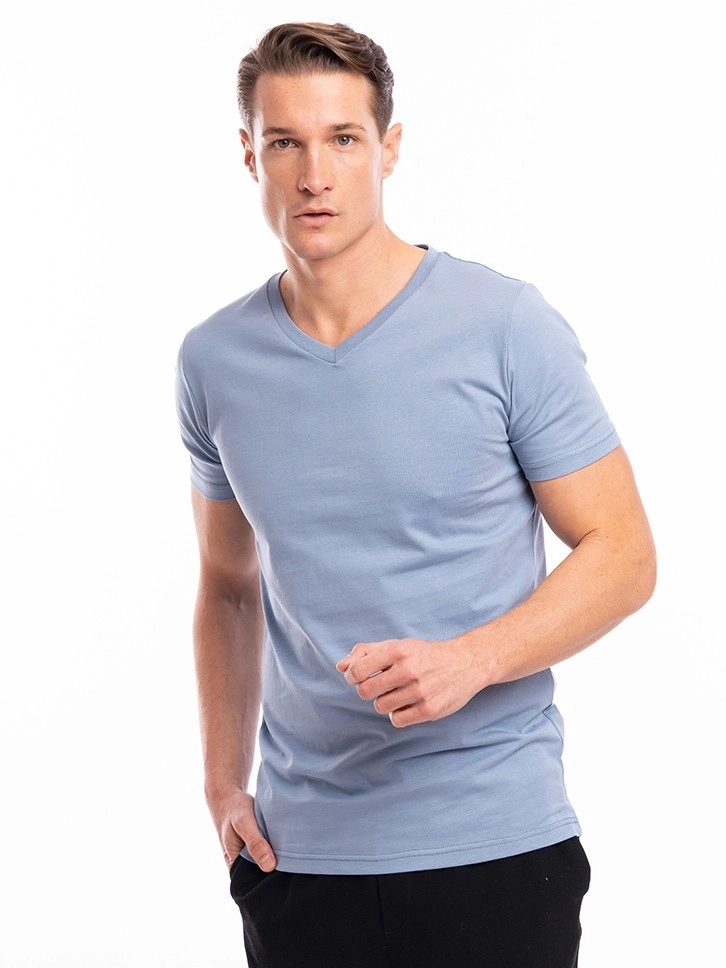 Muška majica kratih rukava u biserno plavom tonu deo je nove SS24 kolekcije. Skrojena je od 100% najkvalitetnijeg pamuka, koji garantuje mekoću i komfor svakodnevnom nošenju. Majica je ravnog kroja sa V izrezom. Lepo se kombinuje sa farmerkama kao i ispod košulje ili džempera za ležeran stil.