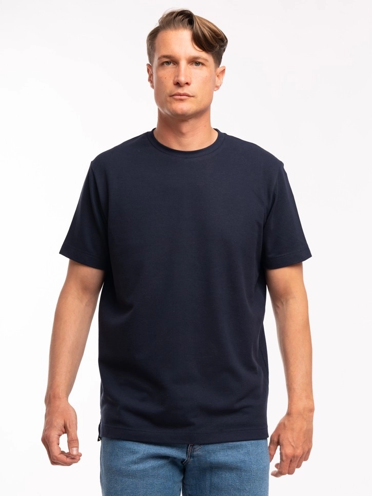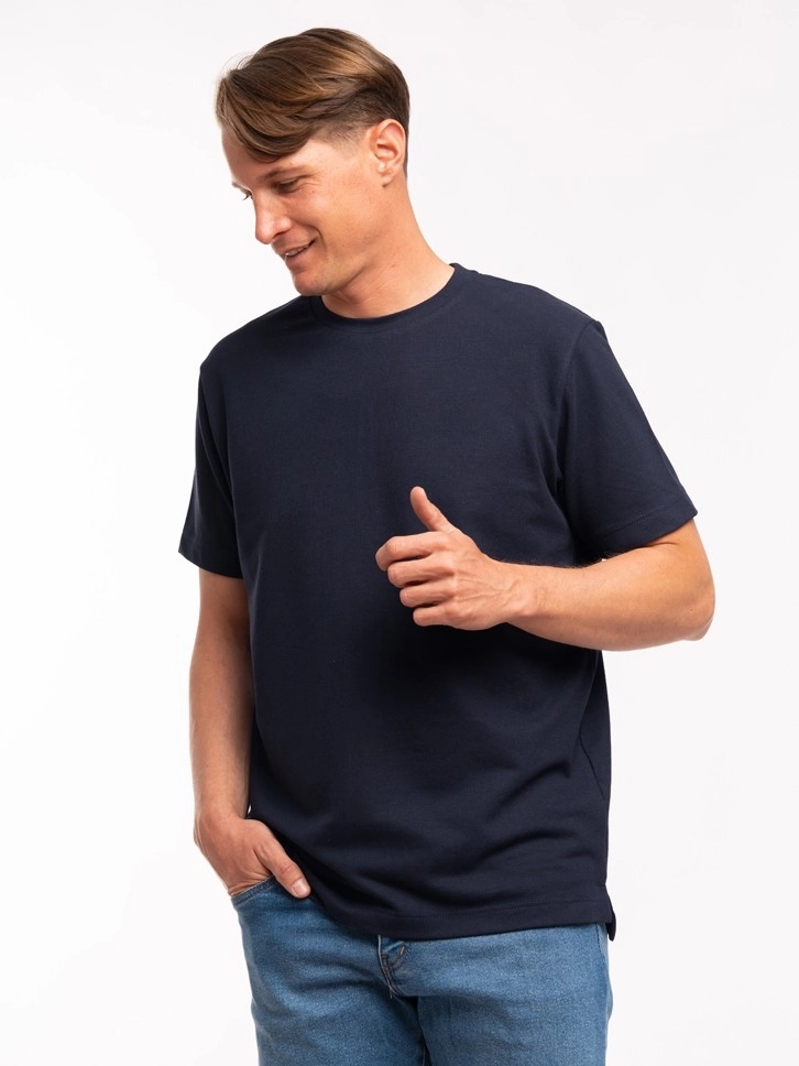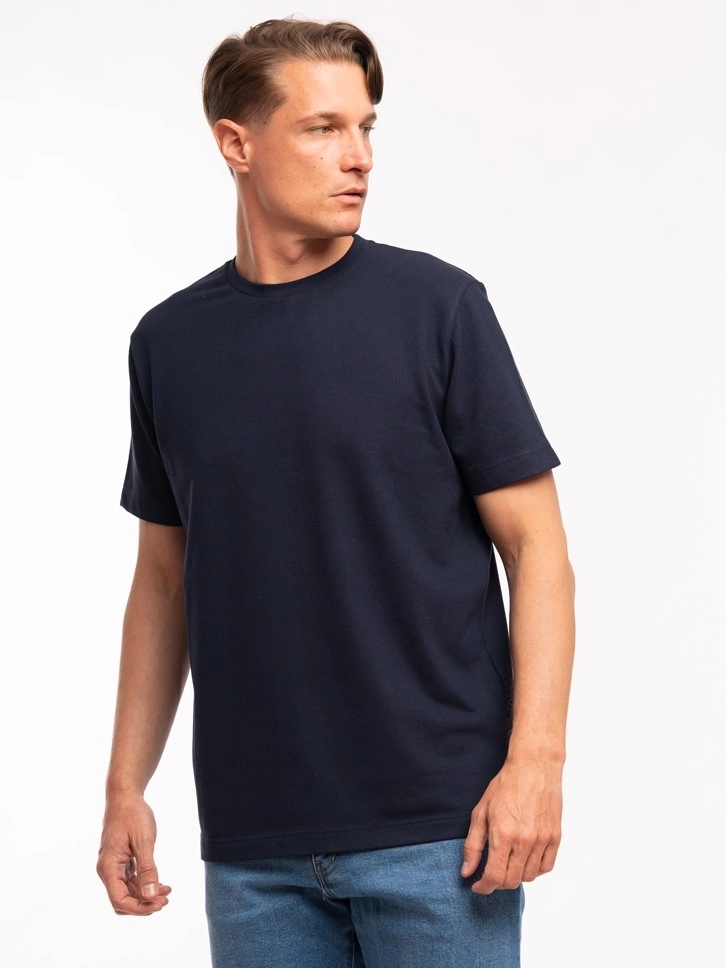 Muška pamučna majica kratih rukava u teget boji deo je naše Basic kolekcije.