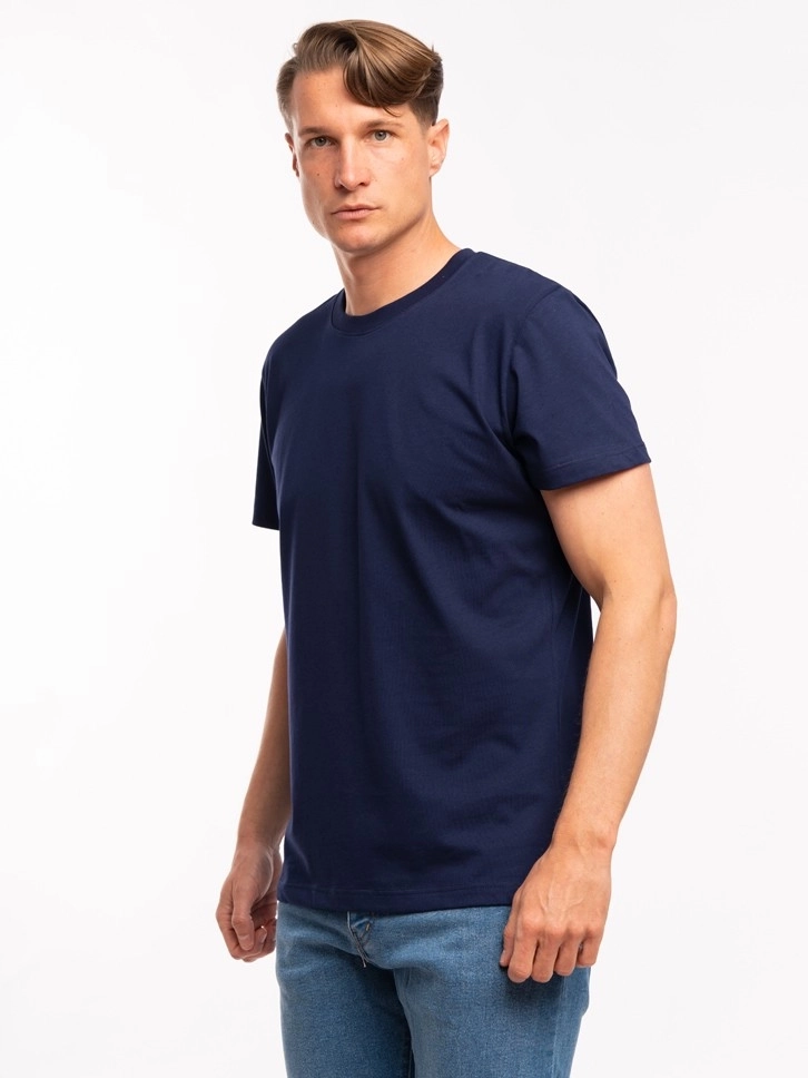 Muška majica kratih rukava u teget boji deo je naše Basic kolekcije. Skrojena je u večini od najkvalitetnijeg pamuka sa malim dodatkom elastina, koji garantuje potpuni komfor svakodnevnom nošenju. Majica ima ravan kroj i okrugli izrez. Lepo se kombinuje sa farmerkama kao i ispod košulje, dukserice ili džempera za ležeran stil.