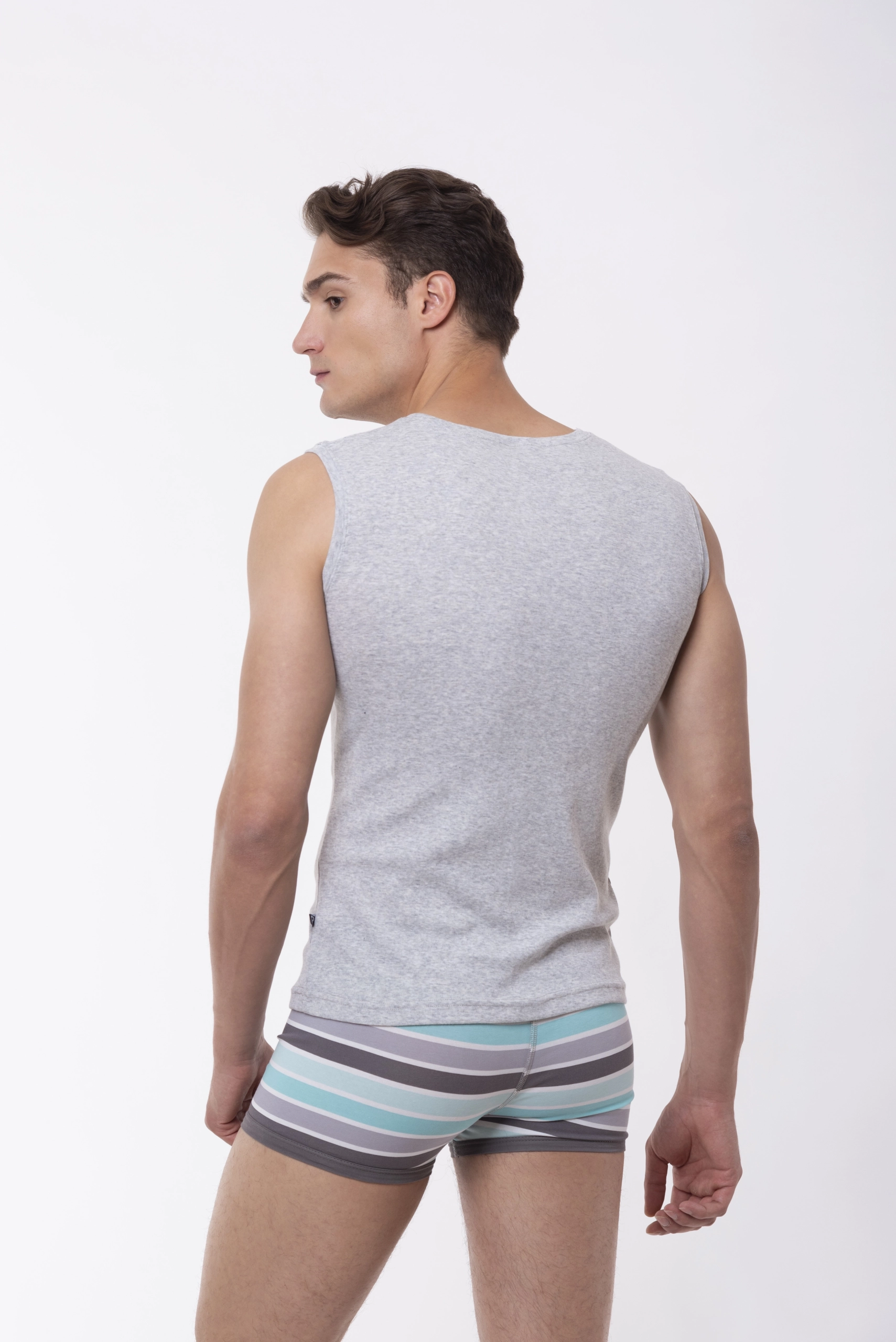 Jednobojna muška atlet majica sa širokim bretelama i okruglim okovratnikom od pamuka.