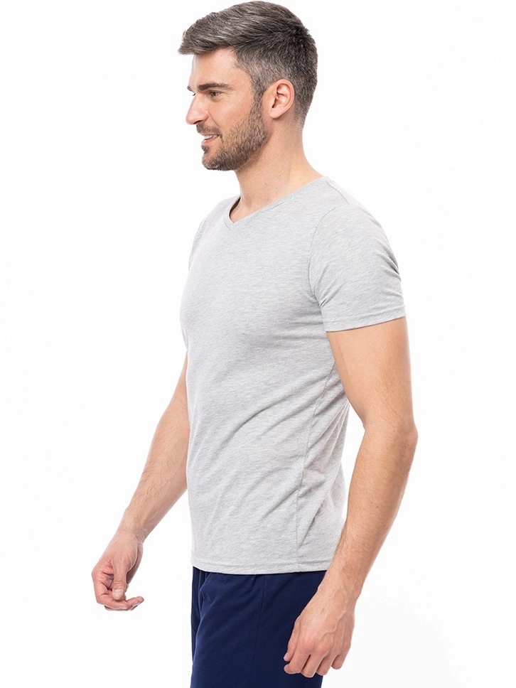 Muška majica kratih rukava u sivoj boji deo je naše Basic kolekcije. Skrojena je od 100% najkvalitetnijeg pamuka, koji garantuje mekoću i komfor svakodnevnom nošenju. Majica je ravnog kroja sa V izrezom. Lepo se kombinuje sa farmerkama kao i ispod košulje ili džempera za ležeran stil.