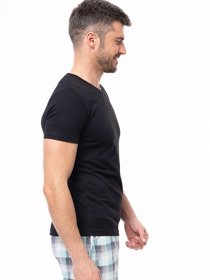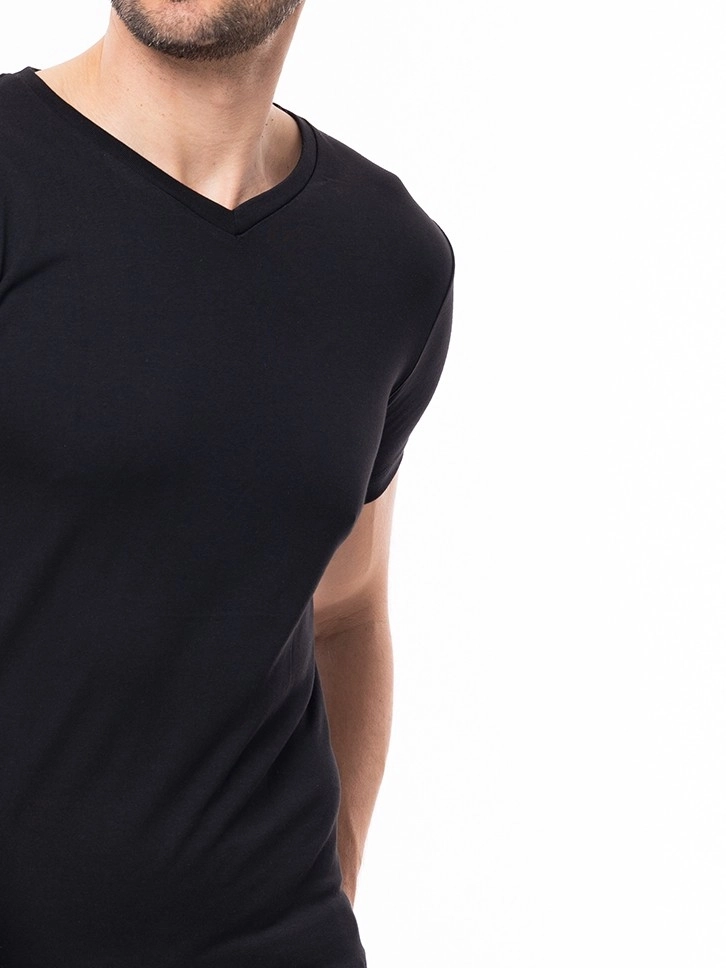 Muška majica kratih rukava u crnoj boji deo je naše Basic kolekcije. Skrojena je od 100% najkvalitetnijeg pamuka, koji garantuje mekoću i komfor svakodnevnom nošenju. Majica je ravnog kroja sa V izrezom. Lepo se kombinuje sa farmerkama kao i ispod košulje ili džempera za ležeran stil.