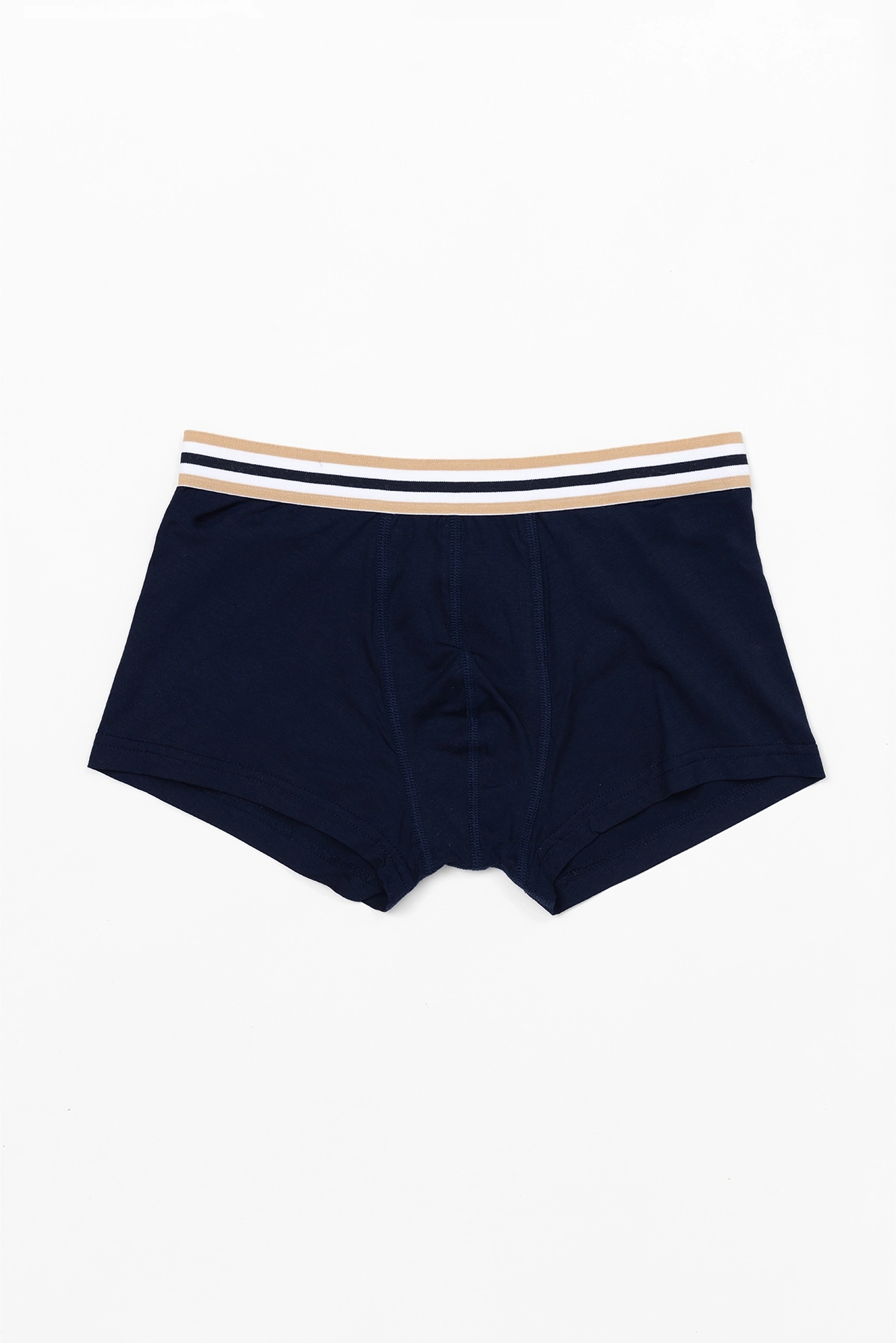 Jednobojne, teget muške bokserice od prirodnog modala. Nogavice su produžene i usko prijanjaju. Pojas je od širokog žakard lastiša.
