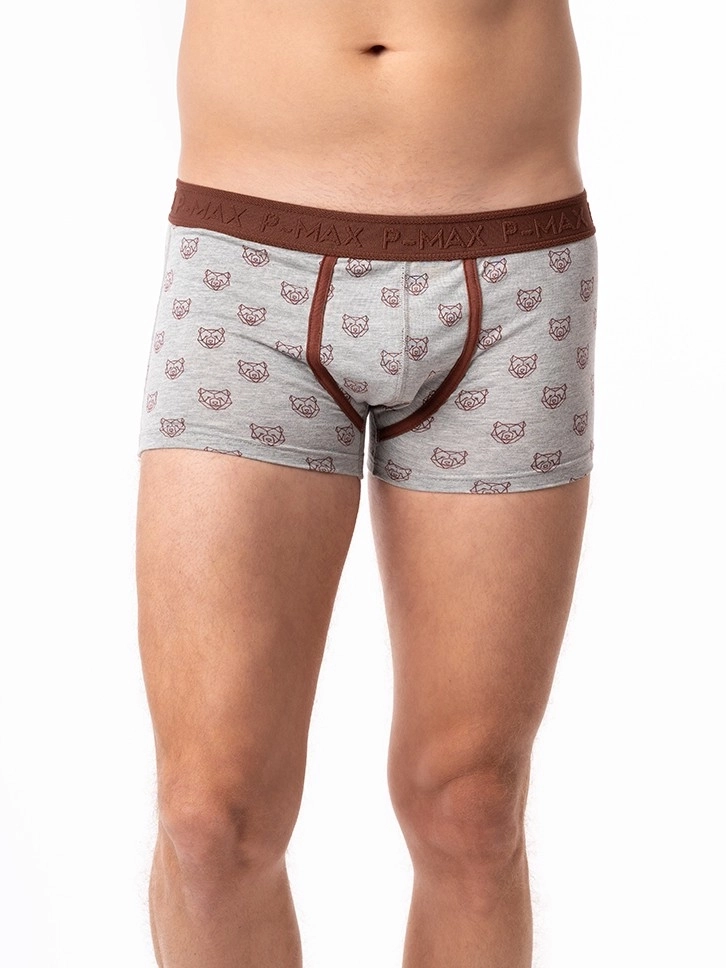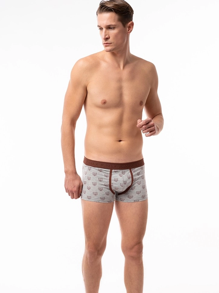 Dezenirane muške bokserice od pamuka. Nogavice su produžene i usko prijanjaju. Pojas je jednobojan od širokog žakard lastiša.