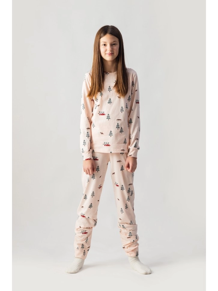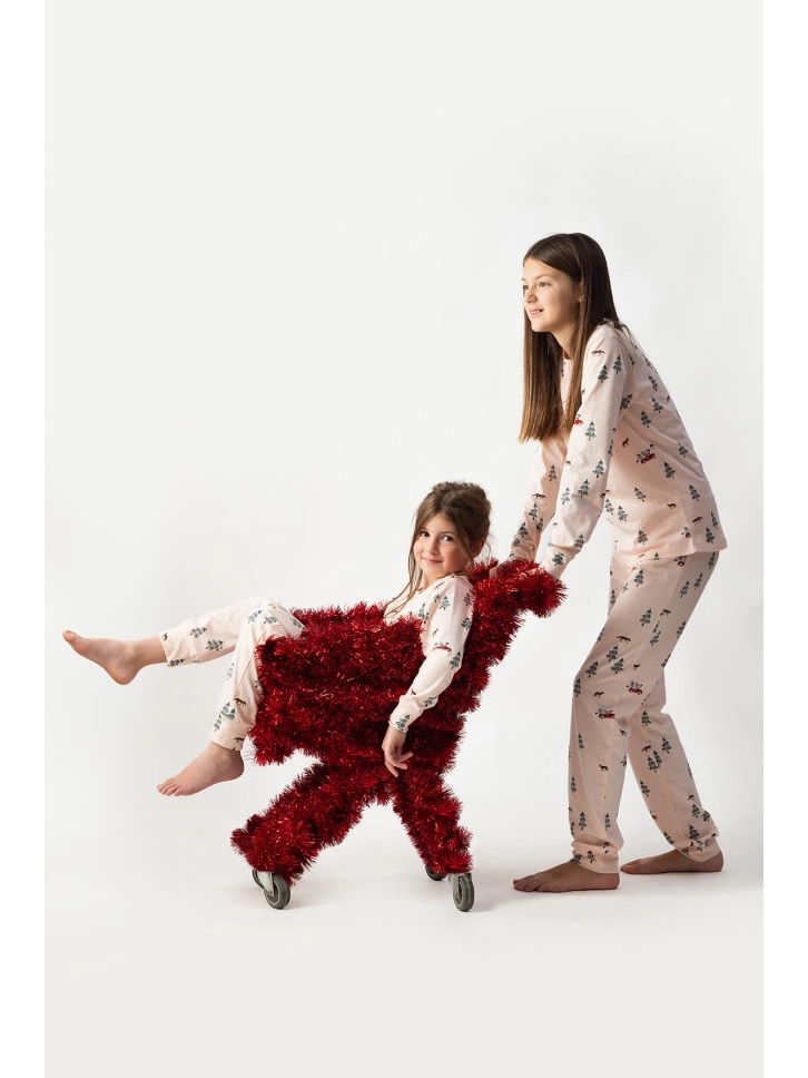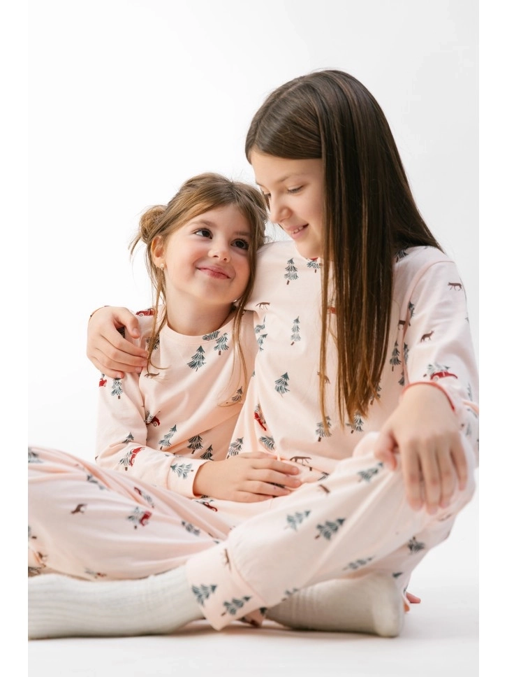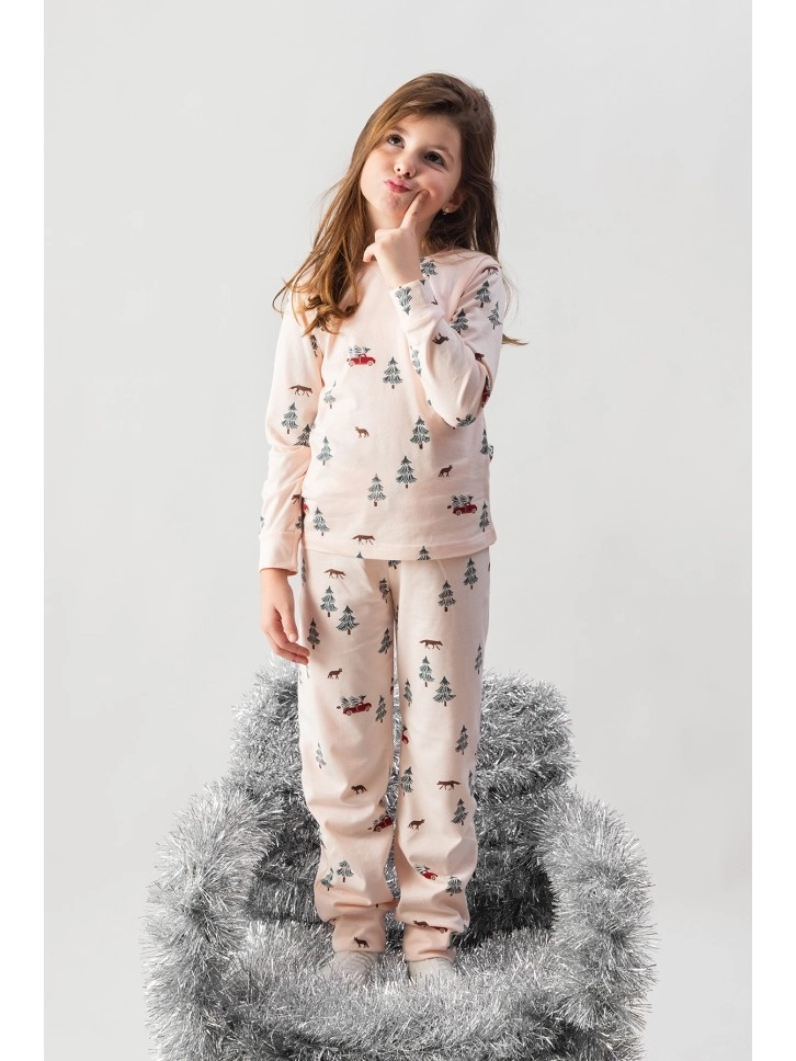 Pidžama za devojčice u bledo roze boji sa dezenom je deo Holiday kolekcije.