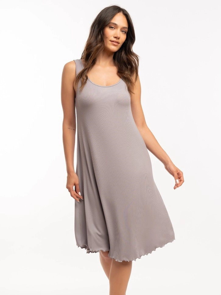 Ženska haljina u sivoj boji od rebrastog materijala deo je naše Basic kolekcije.