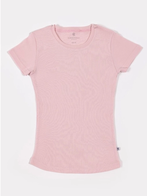 Ženska pamučna majica kratih rukava u nežnoj roze boji deo je naše Basic kolekcije.