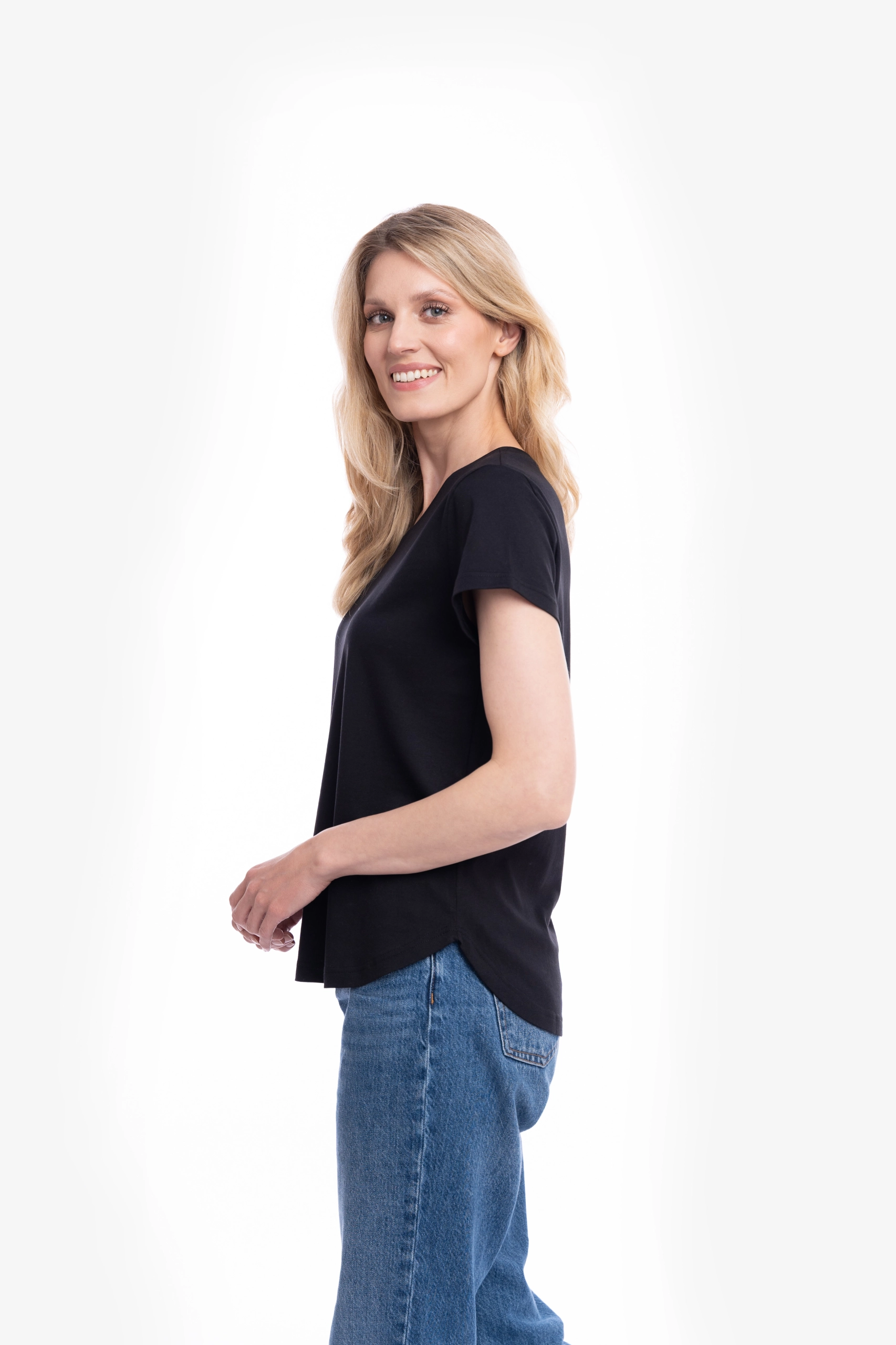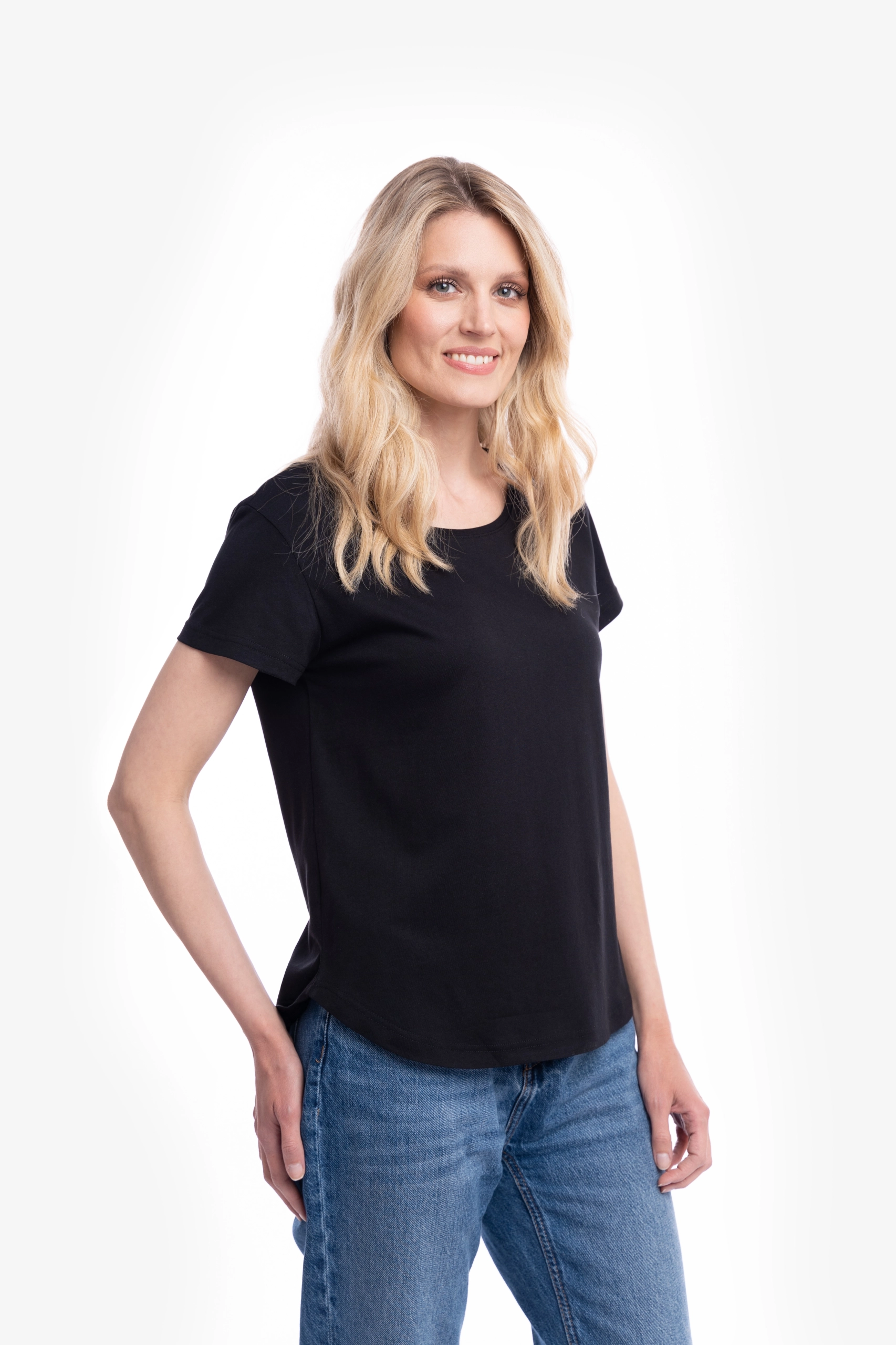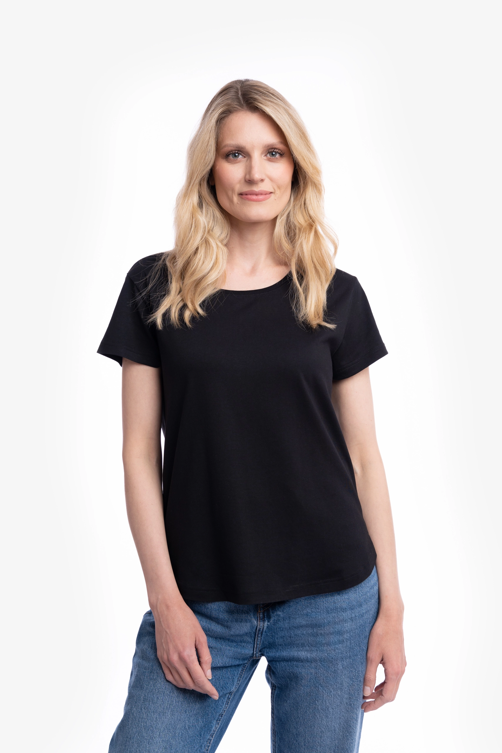 Ženska majica kratih rukava u crnoj boji deo je naše Basic kolekcije.
