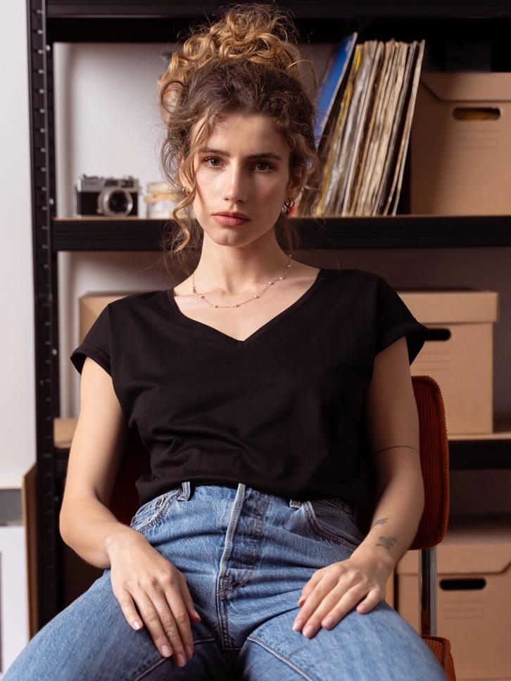 Skrojena je od kombinacije najkvalitetnijeg pamuka i prirodnog modala, zajedno predstavljaju kombinaciju koja garantuje mekoću i komfor tokom nošenja. Majica je blago strukirana sa okruglim izrezom. Njen izgled i boja čine je pogodnom za kombinovanje uz više odevnih kombinacija i stilova.
