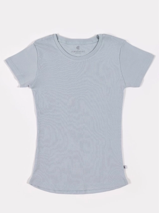Ženska pamučna majica kratih rukava u srebrno plavoj boji deo je naše Basic kolekcije.