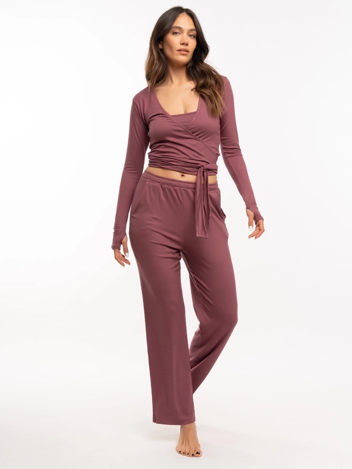 Ženska majica na preklop u tamno teget boji deo je Yoga & Pilates kolekcije i linije Loungewear.
