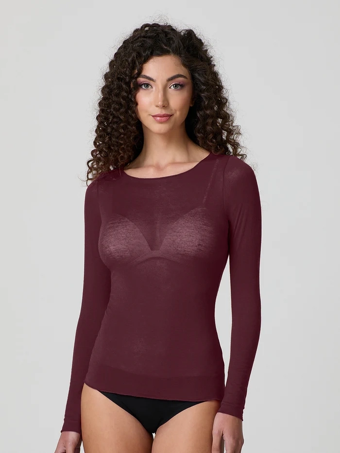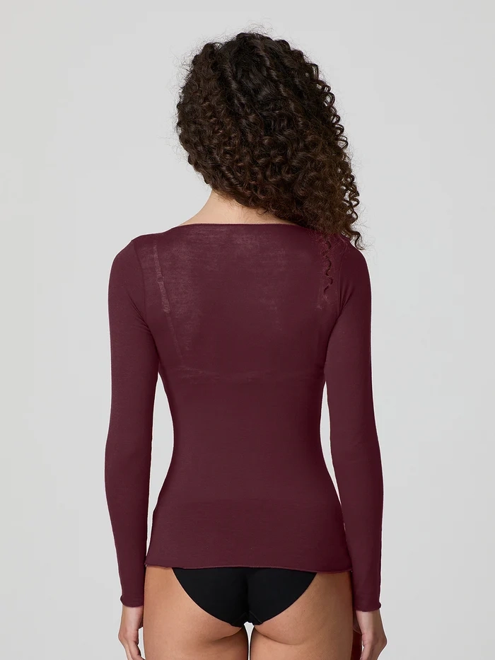 Ženska majica dugih rukava sa čamac izrezom kreirana je od kombinacije modala i mekog kašmira.