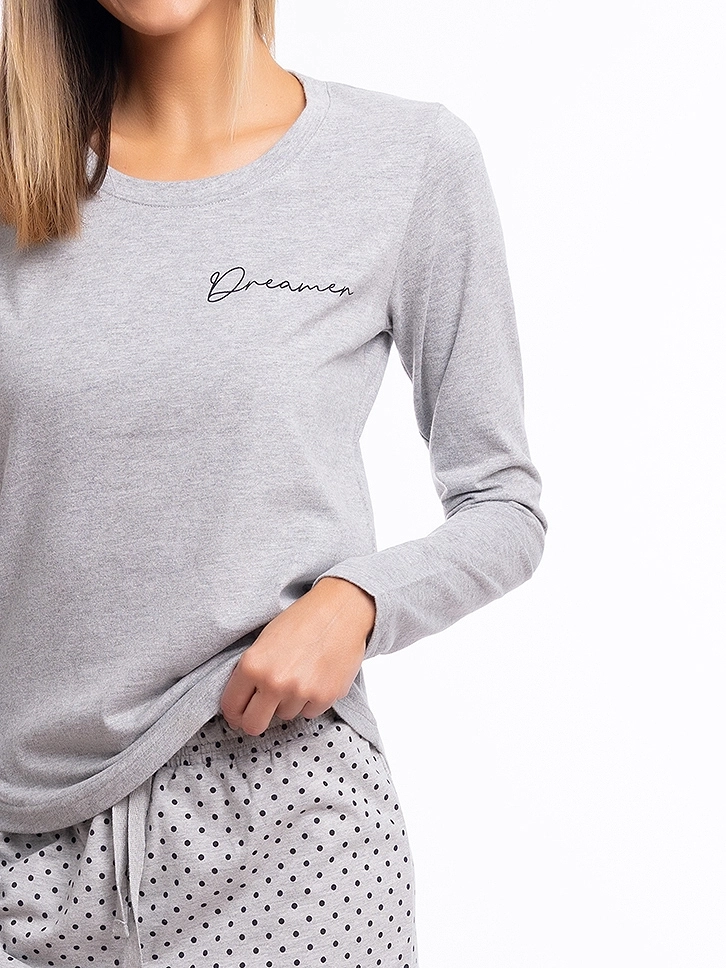 Pamučna ženska pidžama u sivoj boji deo je naše klasične kolekcije.