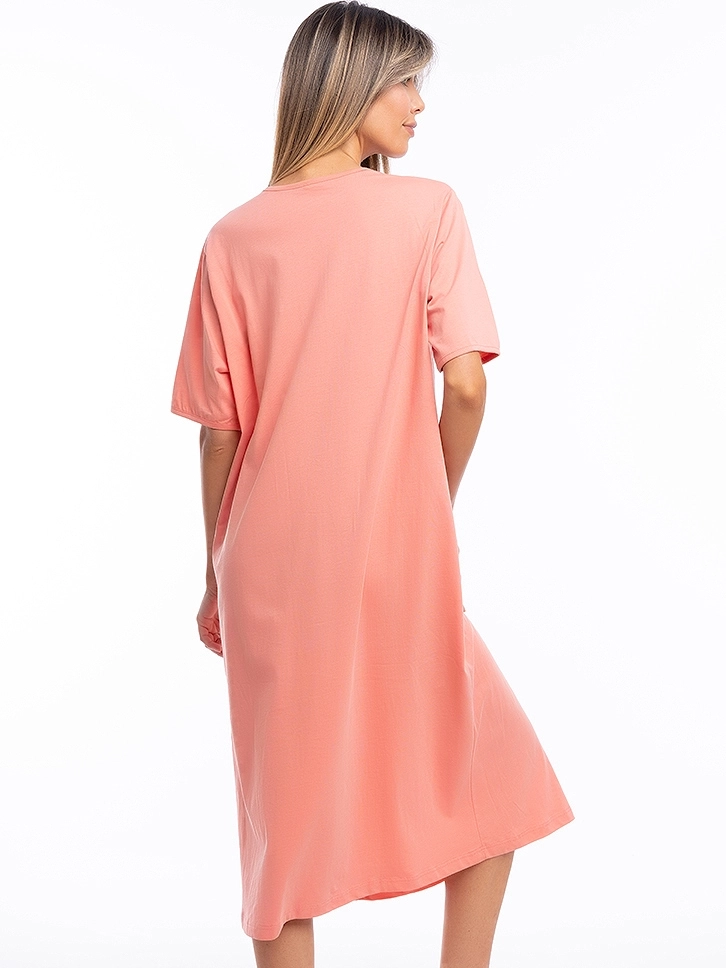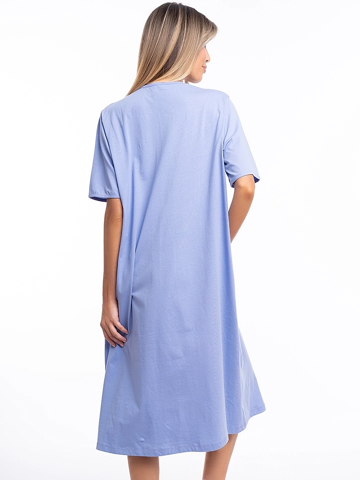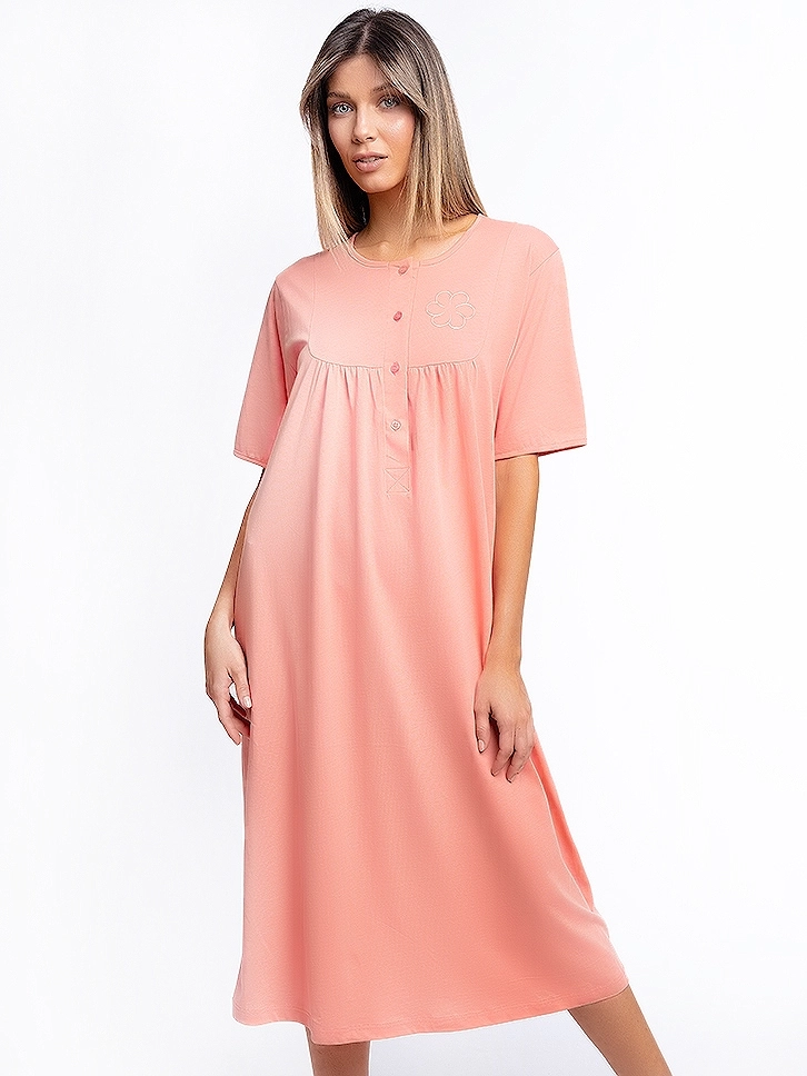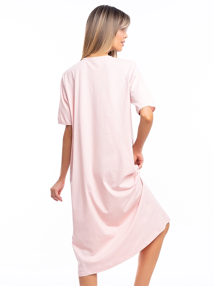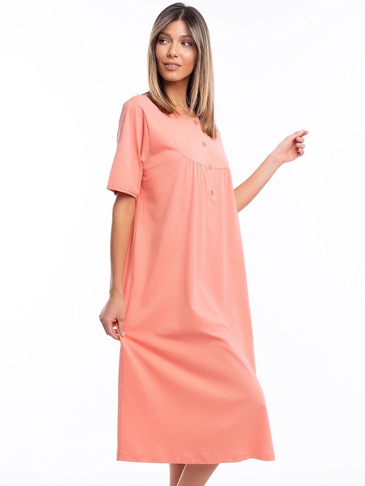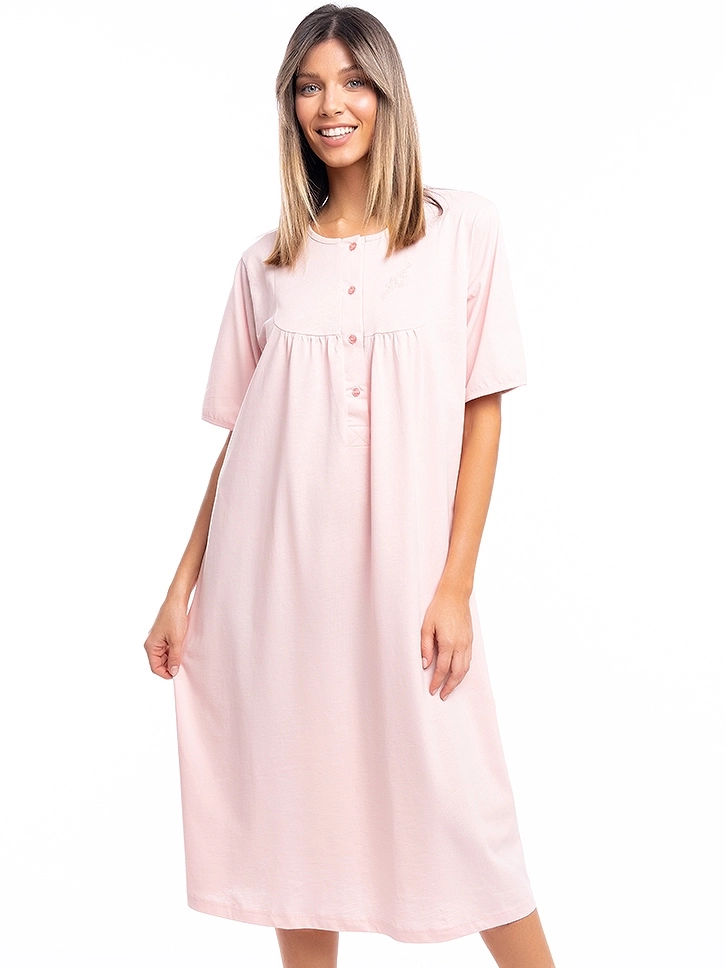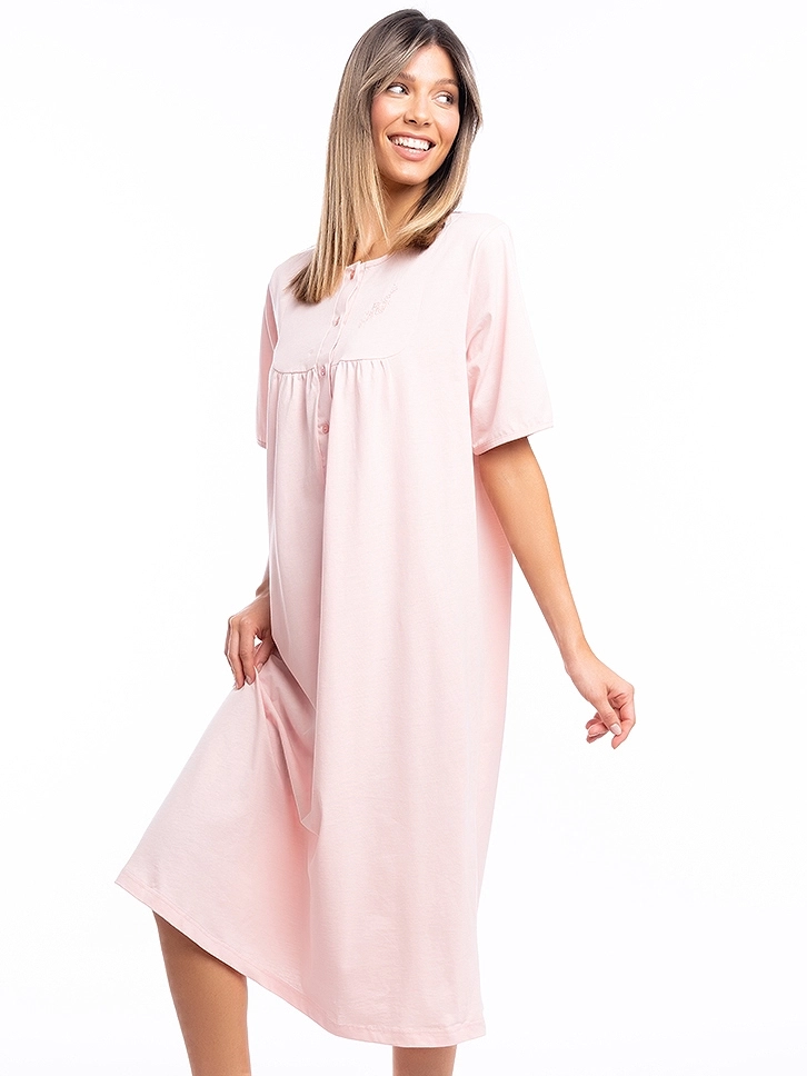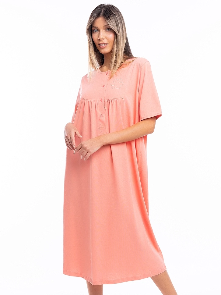 Sačinjena je od 100% prirodnog pamuka koji doprinosi udobnosti i nežnom osećaju na koži. Spavaćica ima kratke rukave i sa prednje strane ima dugmiće. Pogodna je i za dojilje.