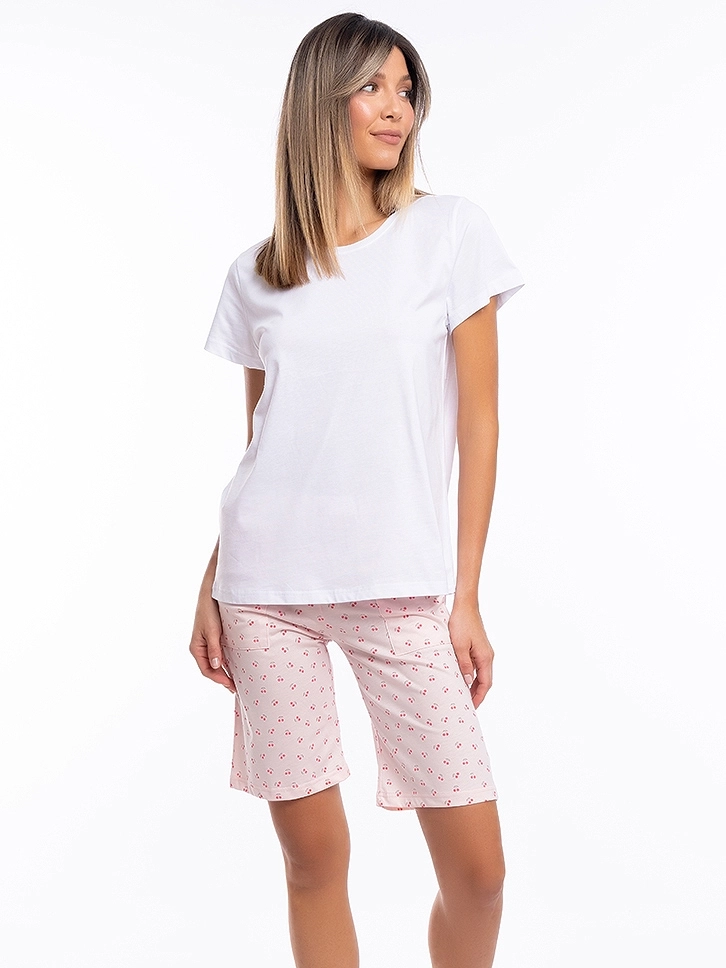 Gornji deo ima klasičan, opušten kroj sa okruglim izrezom i kratkim rukavima, donji deo čine bermude klasičnog kroja, što obezbeđuje potpun komfor.
