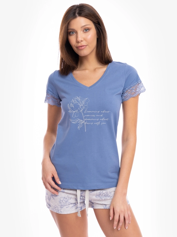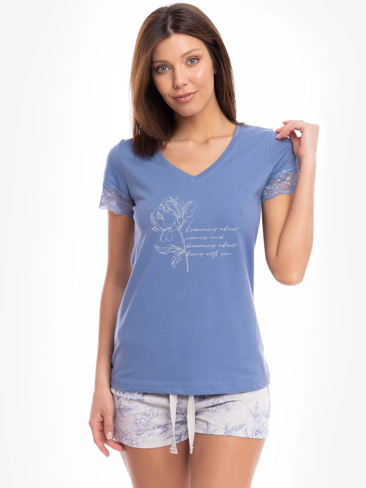 Gornji deo ima klasičan, opušten kroj sa V izrezom i kratkim rukavima sa detaljem čipke, donji deo je klasičnog kroja, što obezbeđuje potpun komfor.