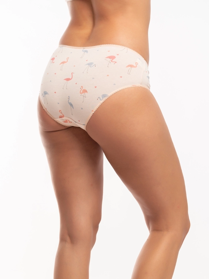 Ženski pamučni slip u kajsija boji sa dezenom deo je Flamingos kolekcije.